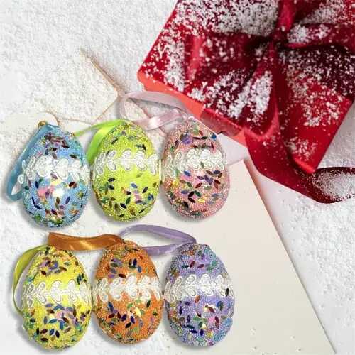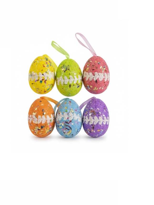 A tojások praktikus akasztóval vannak ellátva, így pillanatok alatt dekoratív elemeivé válhatnak a barkaágaknak, tavaszi kopogtatóknak vagy ablakdíszeknek. A 6 darabos szett különböző alapszíneket (sárga, zöld, narancs, kék, lila, rózsaszín) tartalmaz, amelyek remekül kiegészítik egymást, egységes mégis változatos képet mutatva.