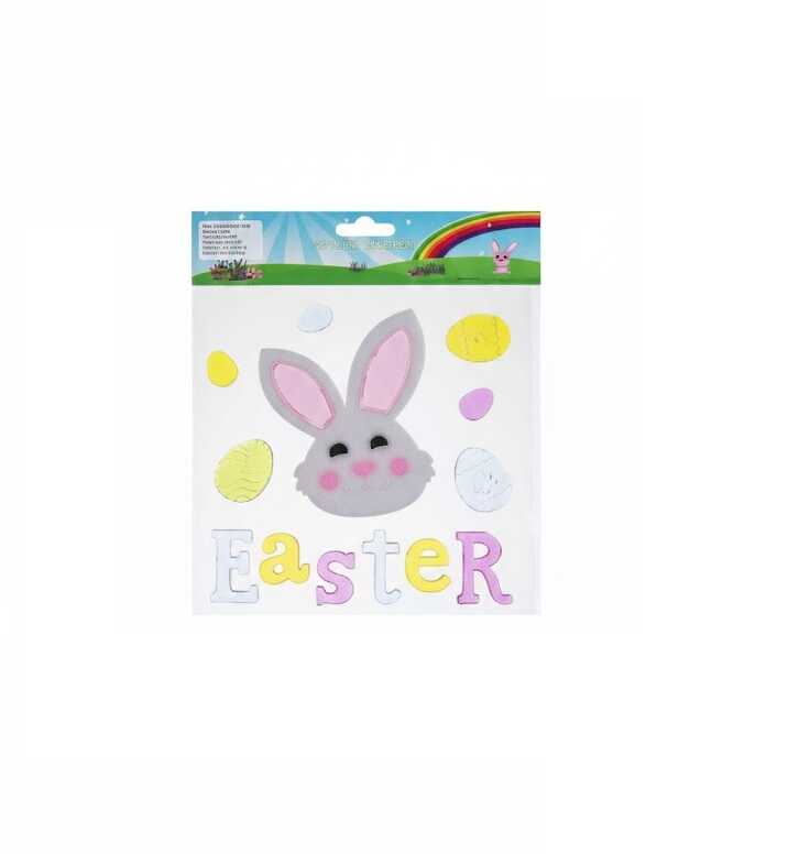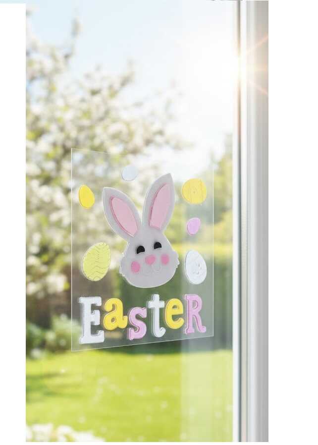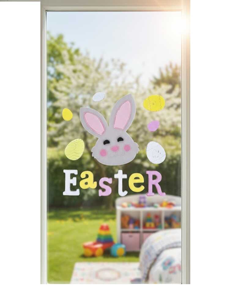 Ez a 20×20 cm-es dekoráció speciális zselés anyagból készült, amely könnyedén tapad bármilyen tiszta üvegfelületre, legyen szó ablakról, tükörről vagy üvegajtóról. A matrica öntapadós, egyszerűen felhelyezhető és nyom nélkül eltávolítható, így ideális választás a gyerekszoba vagy a nappali gyors és látványos tavaszi felfrissítéséhez. A szett tartalmaz egy központi nyuszi figurát, „Easter” feliratot és több kisebb dekoratív tojást, amelyekkel egyedi ünnepi kompozíciót alkothat.