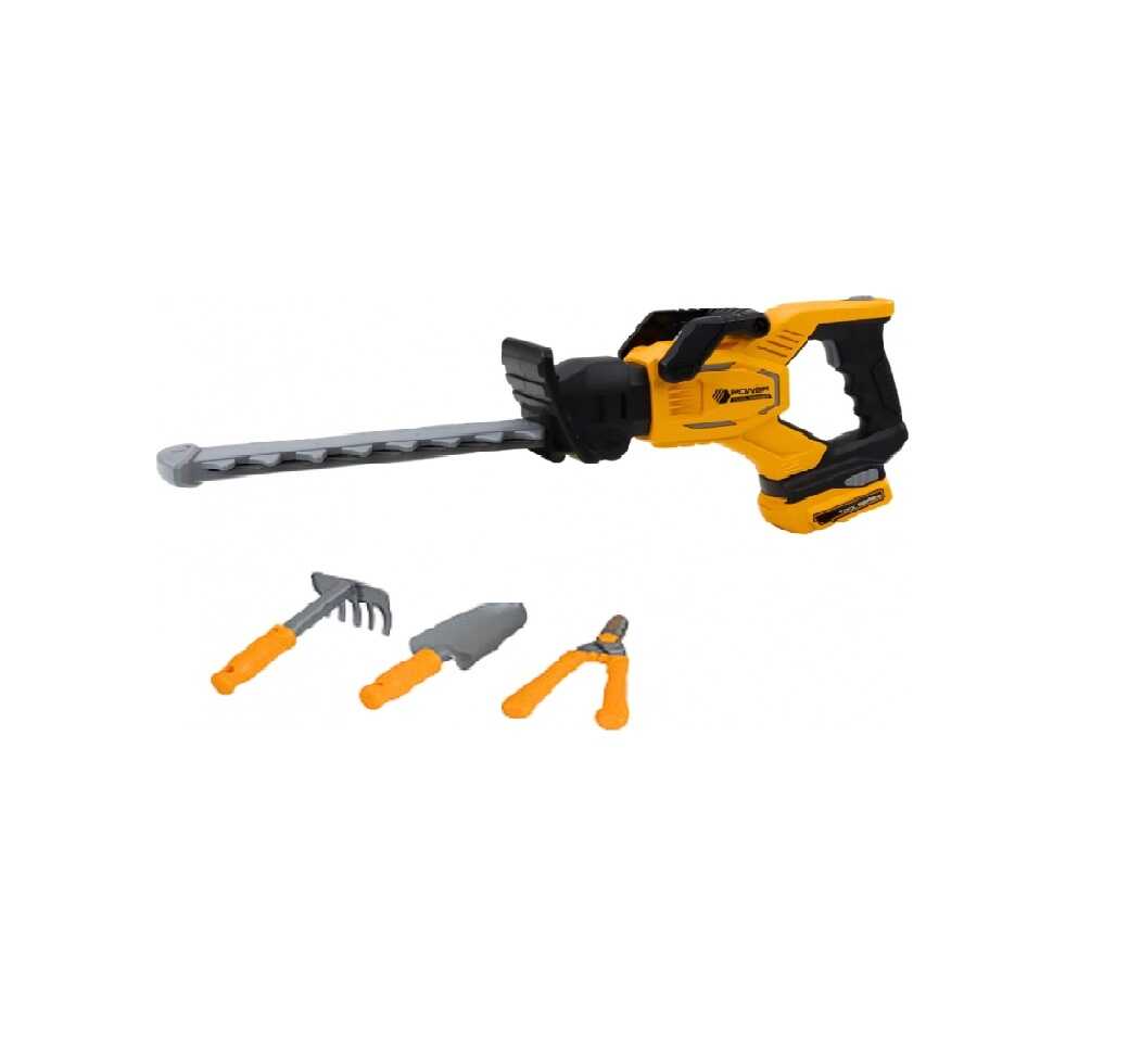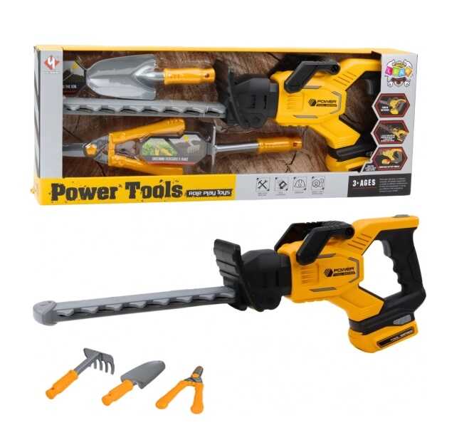 A termék használata 3 éves kortól ajánlott. A készlet anyaga tartós, gyermekbarát műanyag, amely a sárga, fekete, narancssárga és szürke színek kombinációjával idézi meg a valódi kerti gépek világát. Az orrfűrész működéséhez elemek szükségesek, melyeket a csomagolás nem tartalmaz.