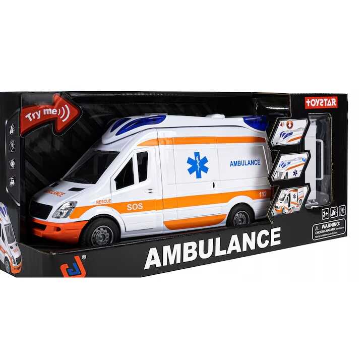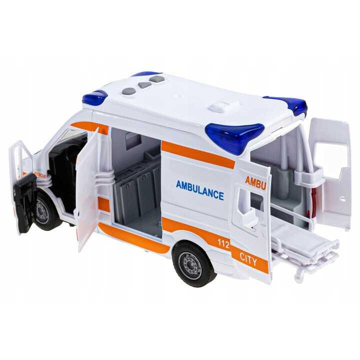 Játék mentőautó nyitható ajtókkal, hang és fényeffektekkel