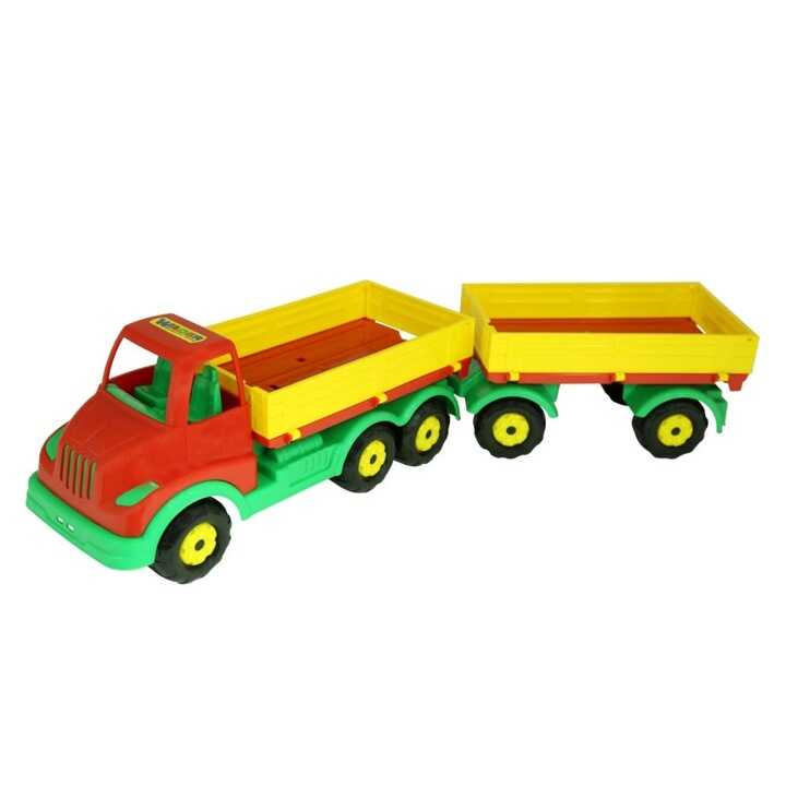 Extra szállítási kapacitás: A teherautóhoz egy lecsatolható utánfutó is tartozik, így a gyerekek dupla annyi építőkockát, homokot vagy egyéb játékot tudnak egyszerre elfuvarozni.