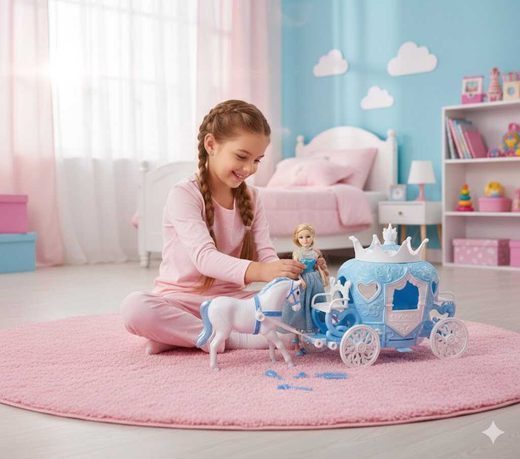 A játék 3 éves kortól ajánlott, és minőségi anyagaival garantálja a tartós használatot. A hatalmas, panorámás ablakos dobozban minden részlet – a csillogó ruhától a hintó kerekeiig – jól látható, így ez a szett az ünnepi ajándékozás igazi fénypontja lesz.
