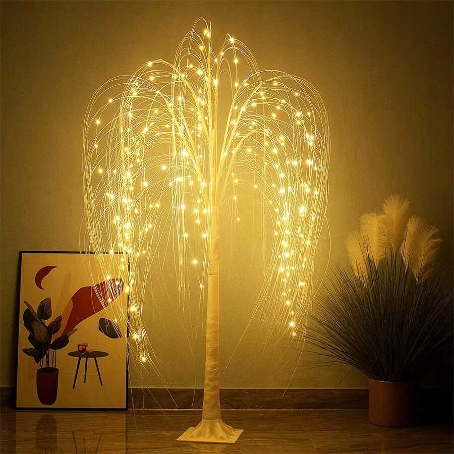 Szeretnéd, ha a kerted vagy a bejáratod egy magasabb, még látványosabb, szikrázó műalkotás lenne az ünnepi szezonban? Ez a 360 LED-es, 1.8 méteres Függő Fűzfa Dekoráció a tökéletes, modern eleganciát nyújtja! Az 1.8 méter magas, fehér törzsű fa ágairól lágyan leomló, melegfehér LED-ek valóságos fényszökőkút hatást keltenek. Képzeld el, ahogy a gazdag, aranyló fény beborítja a bejáratodat vagy a teraszodat, azonnal meghitt és romantikus hangulatot teremtve. Ez a fa egyedülálló látványt nyújt, és méretének köszönhetően már messziről is vonzza a tekintetet.