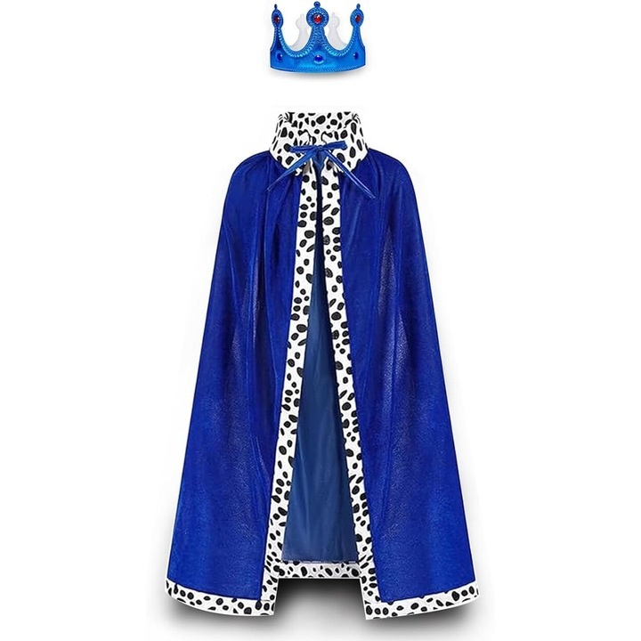 Képzeld el, ahogy gyermeked belép a szobába ebben a csodálatos királyi jelmezben! A hosszú, kék köpeny elegánsan omlik a vállaidon, az arany díszítések pedig csillognak a fényben. A fején egy igazi korona díszeleg, amely hirdeti rangját és hatalmát. Ebben a jelmezben gyermeked nem csak úgy érezheti magát, mint egy igazi király, hanem úgy is fog kinézni!