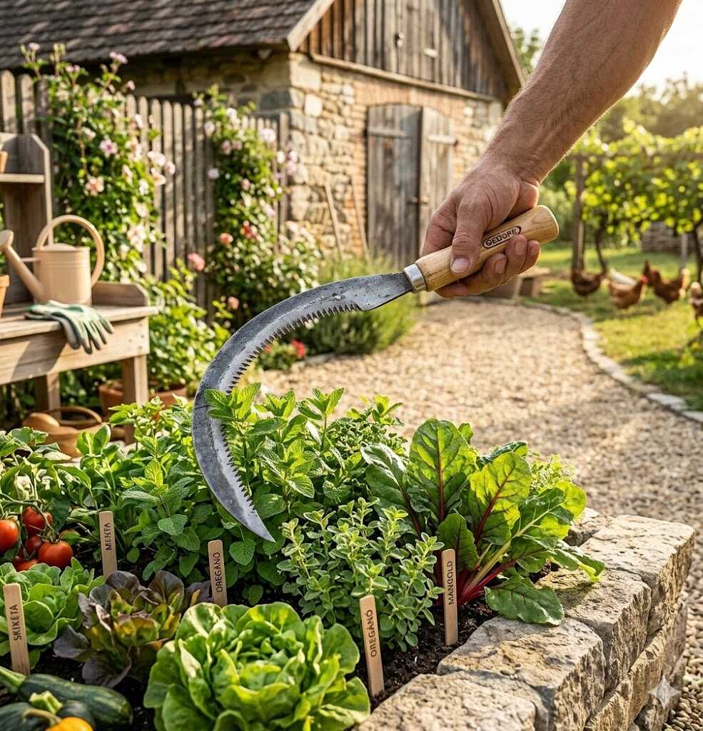 Végezze el a kerti gyommentesítést és a takarmányvágást hatékonyan ezzel a megnövelt pengehosszúságú kézi sarlóval. Ez a szerszám ideális választás nagyobb fűcsomók, elszáradt kórók vagy sűrűbb aljnövényzet gyors és pontos levágásához olyan helyeken, ahol a fűkasza már nem használható biztonságosan.