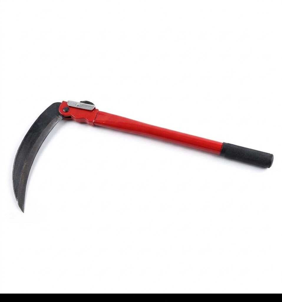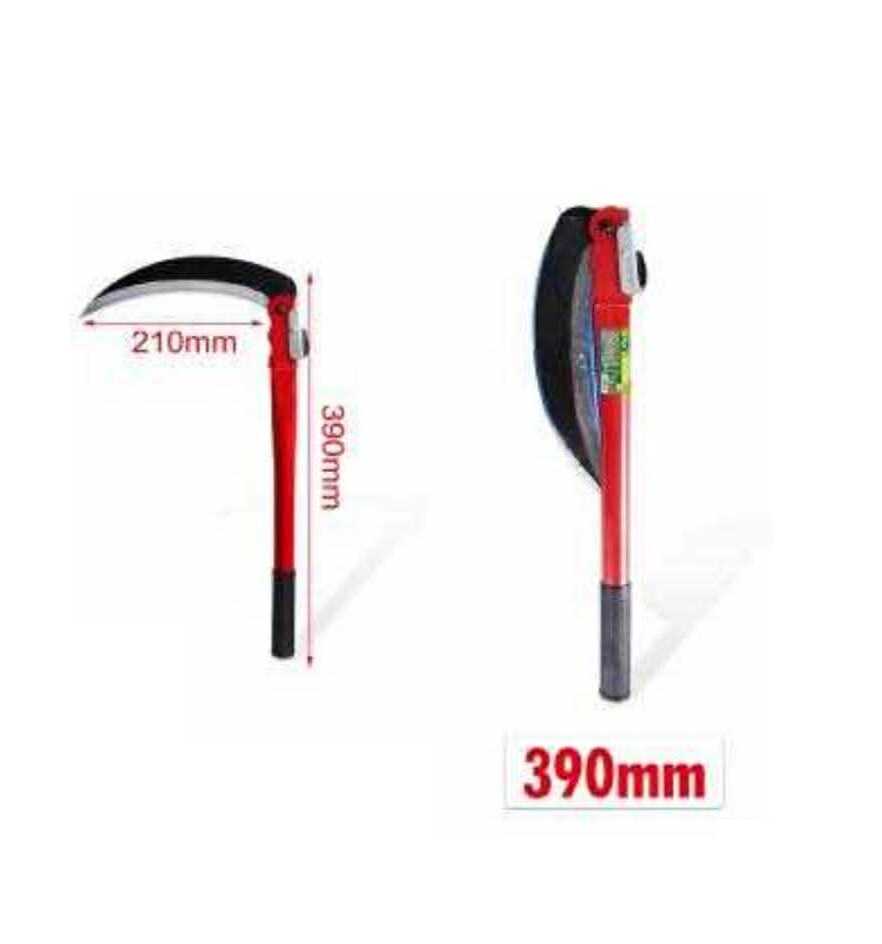 Ez a 390 mm teljes hosszúságú sarló egy 210 mm-es, íves acél pengével rendelkezik, amely borotvaélesre fent élével könnyedén metszi át a növényzetet. A szerszám különlegessége az összecsukható mechanizmus, amely lehetővé teszi, hogy használaton kívül a penge biztonságosan a nyélbe záródjon, megvédve az élt a tompulástól, Önt pedig a véletlen sérülésektől. A pirosra festett fém nyél végén található bordázott markolat stabil fogást biztosít még erőteljesebb suhintások során is. Ideális választás árkok partjára, virágágyások környékére vagy szőlősökbe.