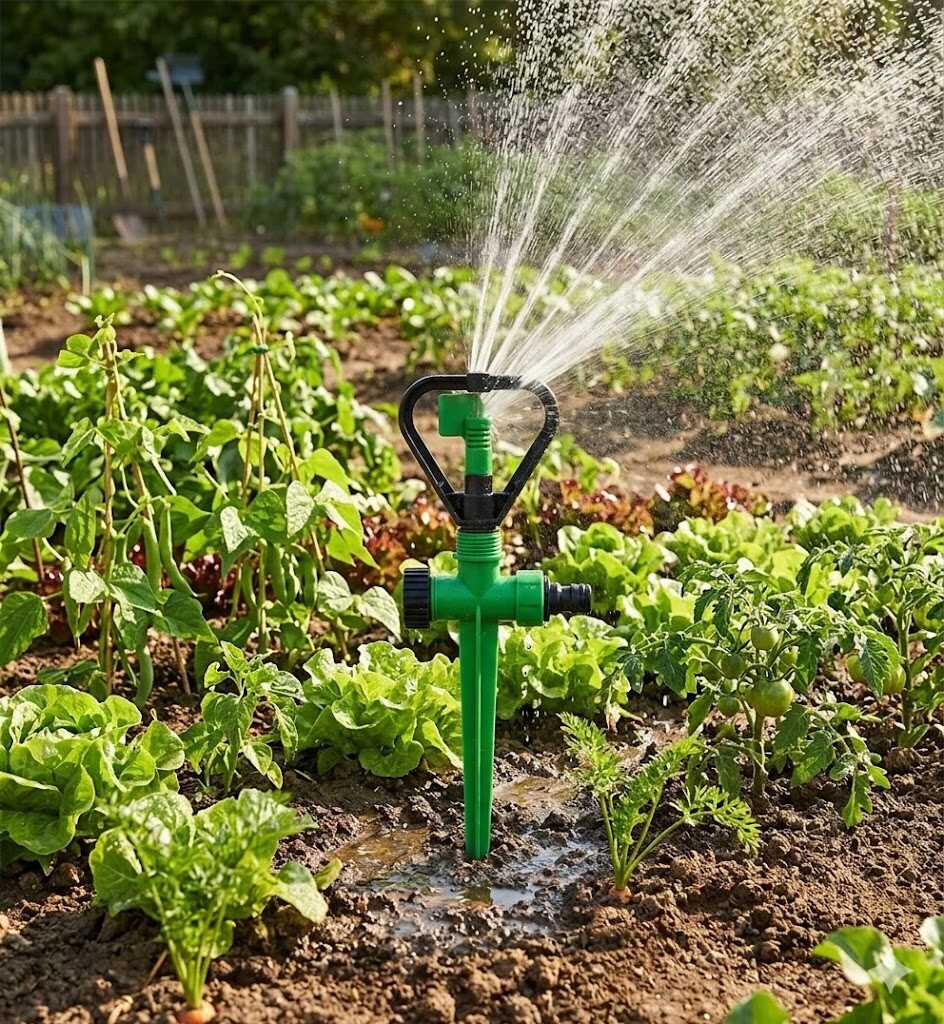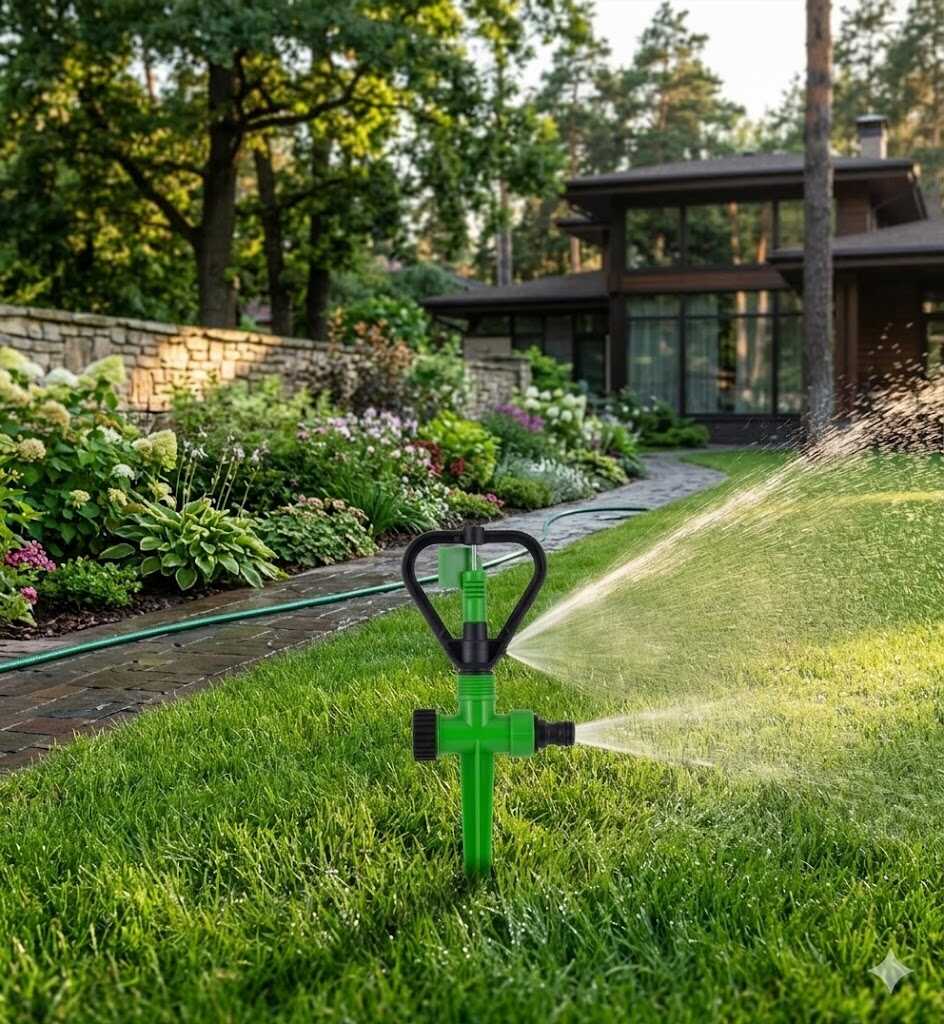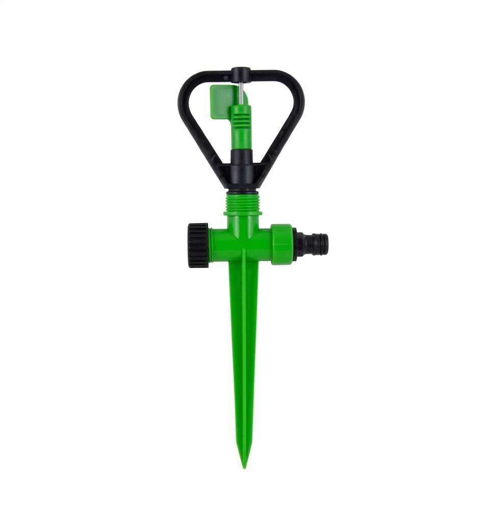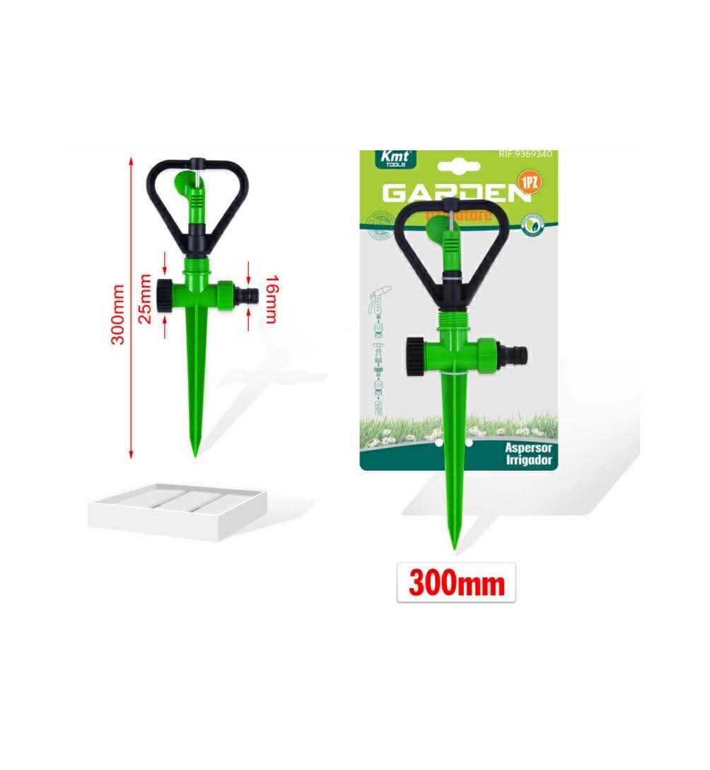 Ez a 300 mm teljes magasságú öntözőegység egy speciális billegő vagy „szárnyas” mechanizmussal rendelkezik, amely a víznyomás hatására forgó-billegő mozgást végez. Ez a mozgás biztosítja a víz egyenletes szétterítését körkörös alakzatban, elkerülve a tócsák kialakulását. A hosszú és hegyes leszúrótüske garantálja a stabilitást még puhább talajban is, a szabványos 16 mm-es csatlakozó pedig lehetővé teszi a gyors és egyszerű üzembe helyezést bármely kerti tömlővel.
