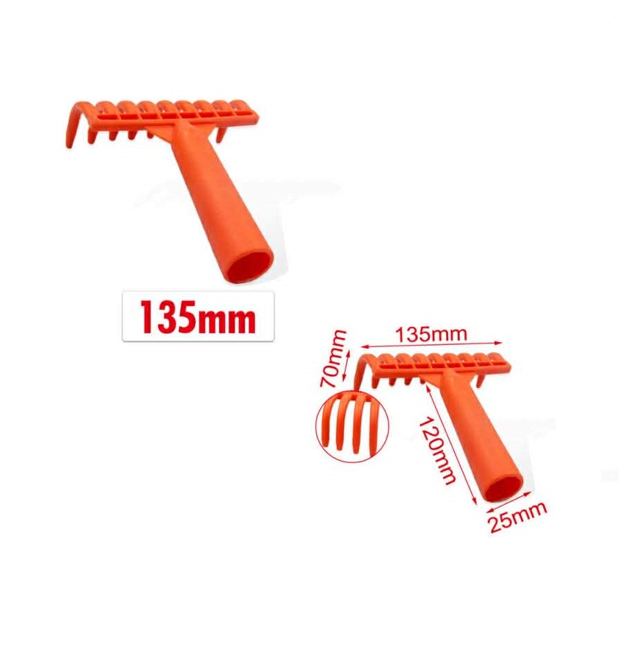 Ez a 135 mm szélességű fej 7 darab lekerekített végű foggal rendelkezik, amelyek finoman siklanak át a talajon vagy a mulcson anélkül, hogy felsértenék a növények gyökereit. A tartós, narancssárga színű műanyag alapanyag nemcsak könnyűvé teszi a szerszámot, hanem ellenáll a korróziónak és az időjárás viszontagságainak is. A 25 mm-es nyélcsatlakozó stabil rögzítést tesz lehetővé vékonyabb fa- vagy műanyag nyelekkel. Ideális választás apróbb kerti hulladék, levelek összegyűjtéséhez vagy a talaj felső rétegének finom elegyengetéséhez.