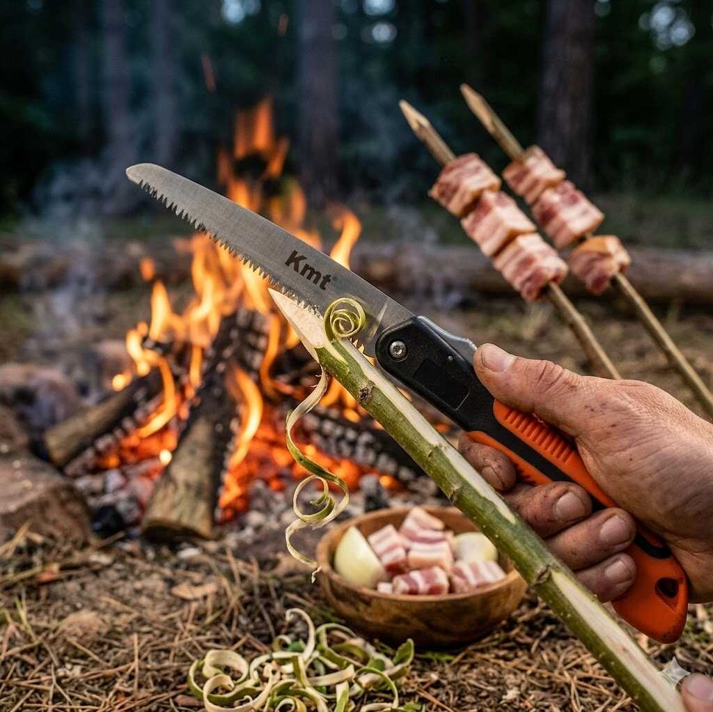 Ez a 18 cm (7,2″) pengehosszúságú fűrész kiváló minőségű, edzett acélból készült, háromszorosan köszörült fogazata pedig villámgyors és tiszta vágást tesz lehetővé friss és száraz fában egyaránt. A szerszám legfőbb előnye a biztonsági rögzítőmechanizmus, amely nyitott állapotban stabilan rögzíti a pengét, megelőzve a véletlen összecsukódást munka közben. Az ergonomikus, narancssárga-fekete markolat csúszásmentes gumírozást kapott a biztos fogás érdekében. Ideális választás metszéshez, túrázáshoz vagy kempingezéshez is.