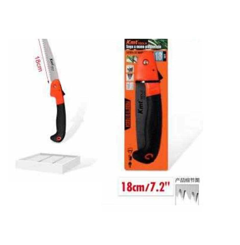 Ez a 18 cm (7,2″) pengehosszúságú fűrész prémium edzett acélból készült, háromszoros élezésű fogazata pedig garantálja a gyors és tiszta vágást mindkét irányú mozgásnál. Az íves kialakítású, gumírozott markolat stabil és csúszásmentes fogást biztosít, miközben a hajlított forma természetesebb tartást tesz lehetővé a vágás során. A nyél tetején található biztonsági gomb rögzíti a pengét nyitott állapotban, megelőzve a véletlen összecsukódást, zárt állapotban pedig fixen tartja a pengét a biztonságos szállítás érdekében.