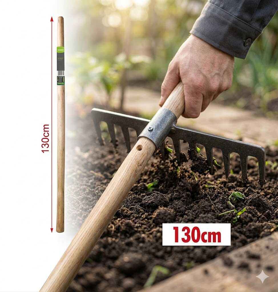Maximalizálja munkavégzése hatékonyságát ezzel az extra hosszú, 130 cm-es kerti szerszámnyéllel. A megnövelt hosszúság nemcsak nagyobb elérést biztosít, hanem lehetővé teszi a teljesen egyenes háttal történő munkavégzést, így jelentősen csökkenti a derék és a hát terhelését a hosszabb ideig tartó kapálás vagy talajlazítás során.