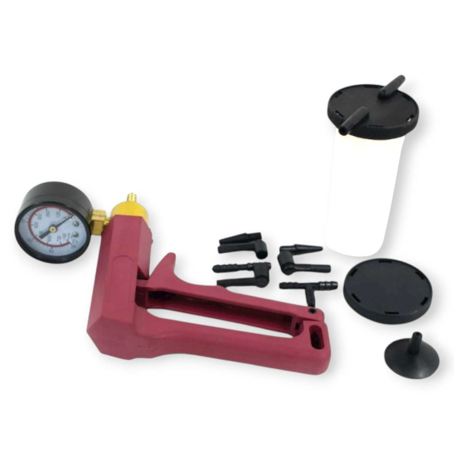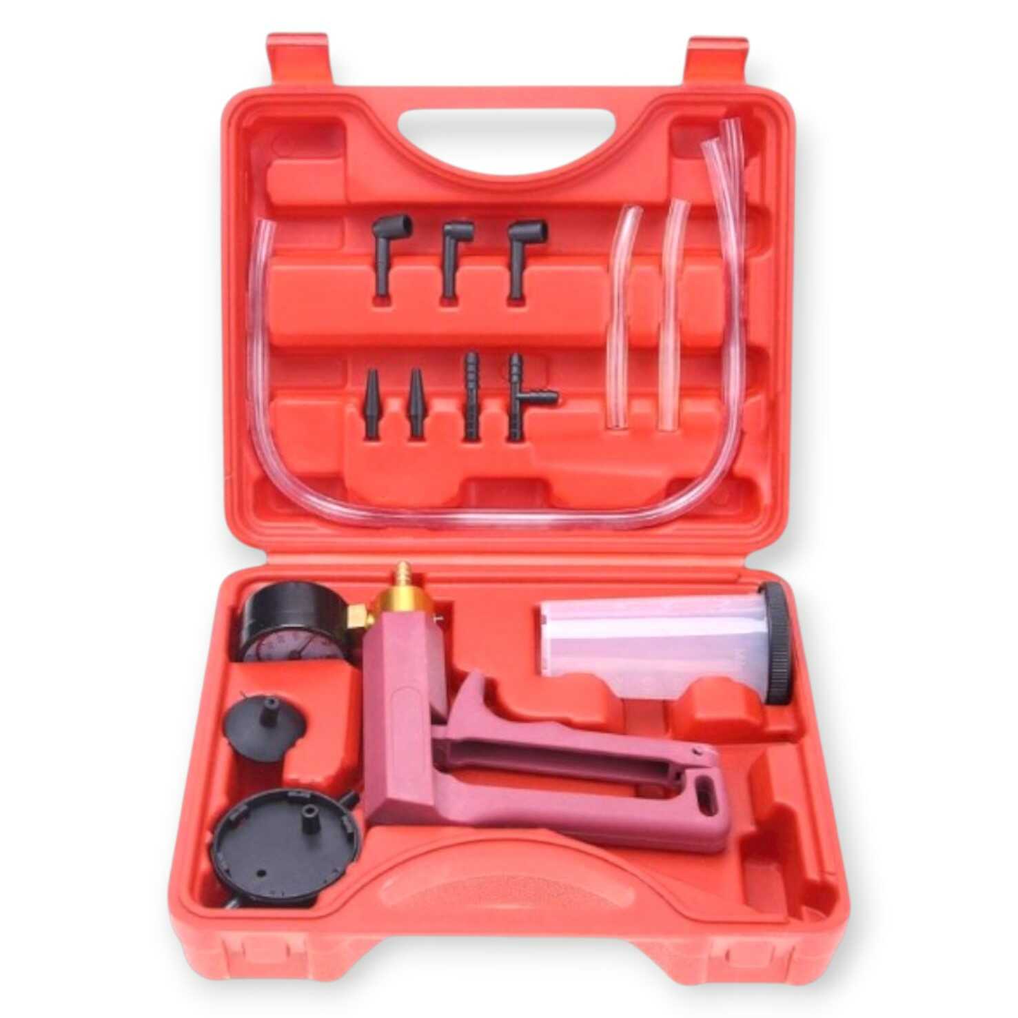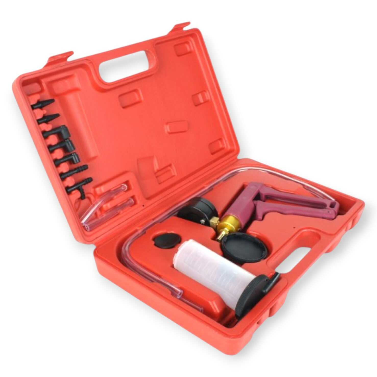 Ez a professzionális kézi vákuumszivattyú készlet elengedhetetlen eszköz a gépjárművek fék- és kuplungrendszerének szakszerű karbantartásához, valamint diagnosztikai feladatok elvégzéséhez. A nagy pontosságú mérőórával ellátott pumpa lehetővé teszi a vákuumvezérelt rendszerek (például MAP szenzorok, vákuumos gyújtáselosztók, fűtésszabályozó szelepek) gyors és megbízható ellenőrzését. A szerszám legfőbb előnye a sokoldalúság: a mellékelt adapterek és csövek segítségével a féklégtelenítés akár egyetlen személy által is elvégezhető, elkerülve a hagyományos pedálpumpálós módszer nehézségeit. A szerkezet strapabíró fém és magas minőségű műanyag alkatrészekből épül fel, biztosítva a hosszú élettartamot és a precíz működést. A készlet kompakt kialakítása révén mobil szervizeléshez is kiválóan alkalmas, a rendszerezett műanyag koffer pedig megvédi a finommechanikájú mérőórát a sérülésektől és a szennyeződésektől.