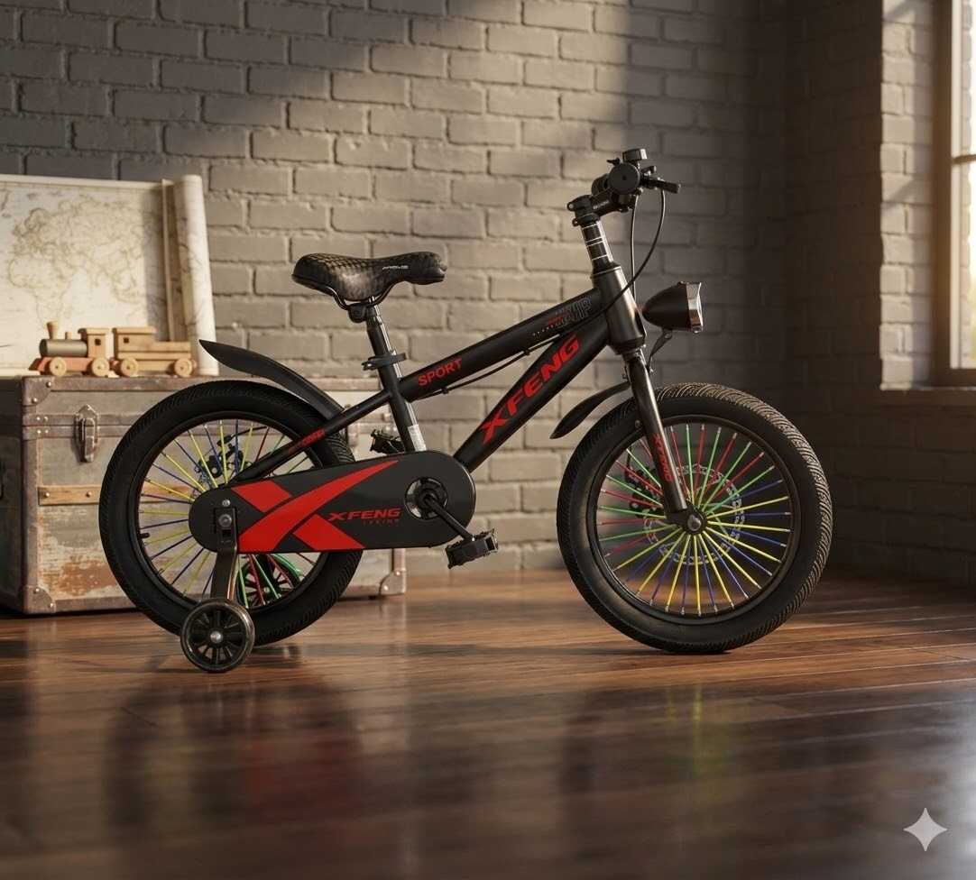 A KidRider Sport 12 colos gyerek kerékpár nem csupán egy közlekedési eszköz, hanem a tökéletes társ az első önálló gurulásokhoz. A tervezésnél a legfőbb szempont a stabilitás és a gyermek önbizalmának építése volt. A matt fekete váz és a dinamikus vörös mintázat erőt sugároz, míg a kerék különlegessége – a többszínű, neon árnyalatú küllőzés – minden pillantást magára vonz, így a kicsi büszkén pattanhat majd a nyeregbe.