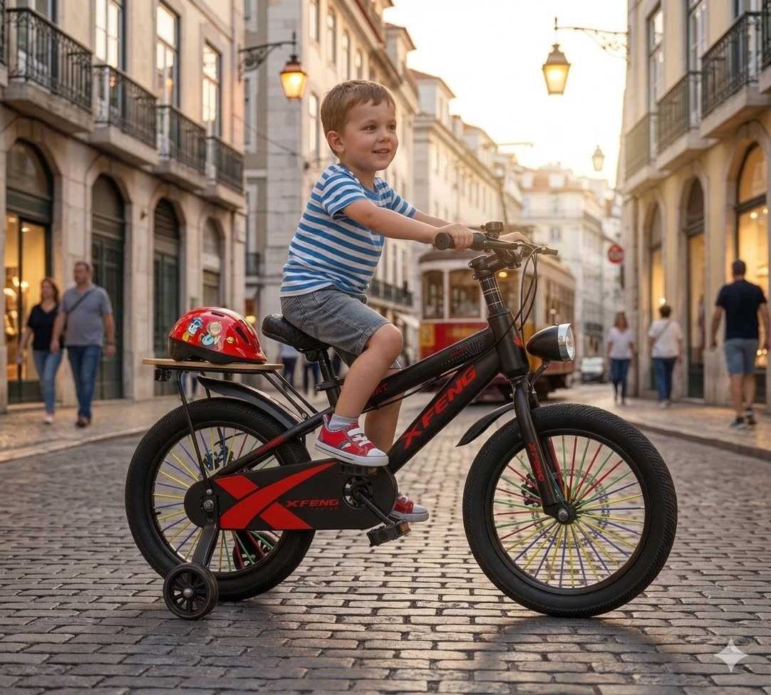 Gyermeked biztonsága a legfontosabb. Az XFENG kerékpár hatékony első és hátsó tárcsafékkel van felszerelve, amelyek gyors és biztonságos megállást tesznek lehetővé bármilyen helyzetben. A láncvédő burkolat védi a gyermek ruházatát és megakadályozza a sérüléseket.