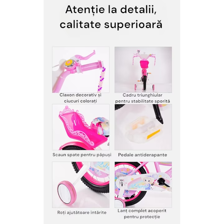 Melyik kislány ne álmodozna arról, hogy egy igazi hercegnőként guruljon végig a parkon? Ezzel a káprázatos, 12-es méretű Qisheng kerékpárral most te lehetsz az, aki valóra váltja ezt a varázslatot! A vibráló pink szín, a szív alakú kosár és a díszes kiegészítők azonnal a figyelem középpontjába emelik a kis bringást. Ez a bicikli nem csak egy jármű, hanem egy stílusos és biztonságos trón, amely önbizalmat ad az első önálló méterekhez. Induljon a mesés kaland minden nap!