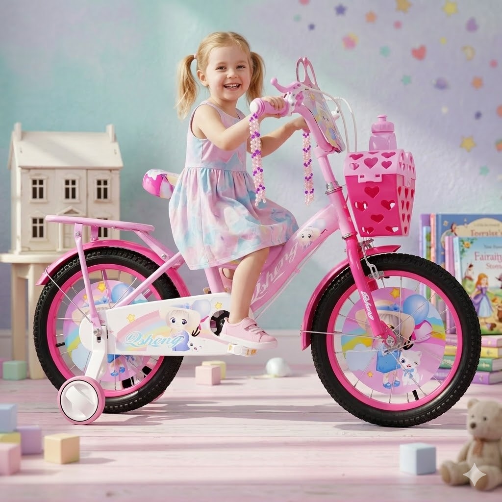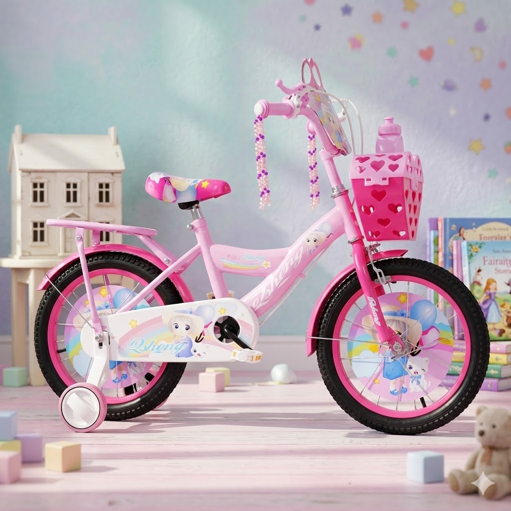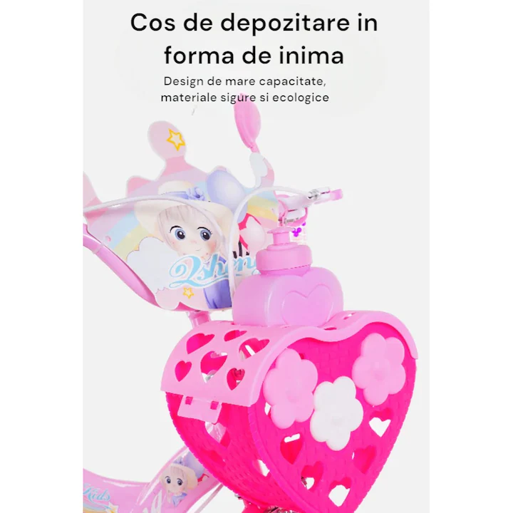 Qisheng 506P 12″ Hercegnő Bicikli – Szív Kosárral és Babaüléssel
