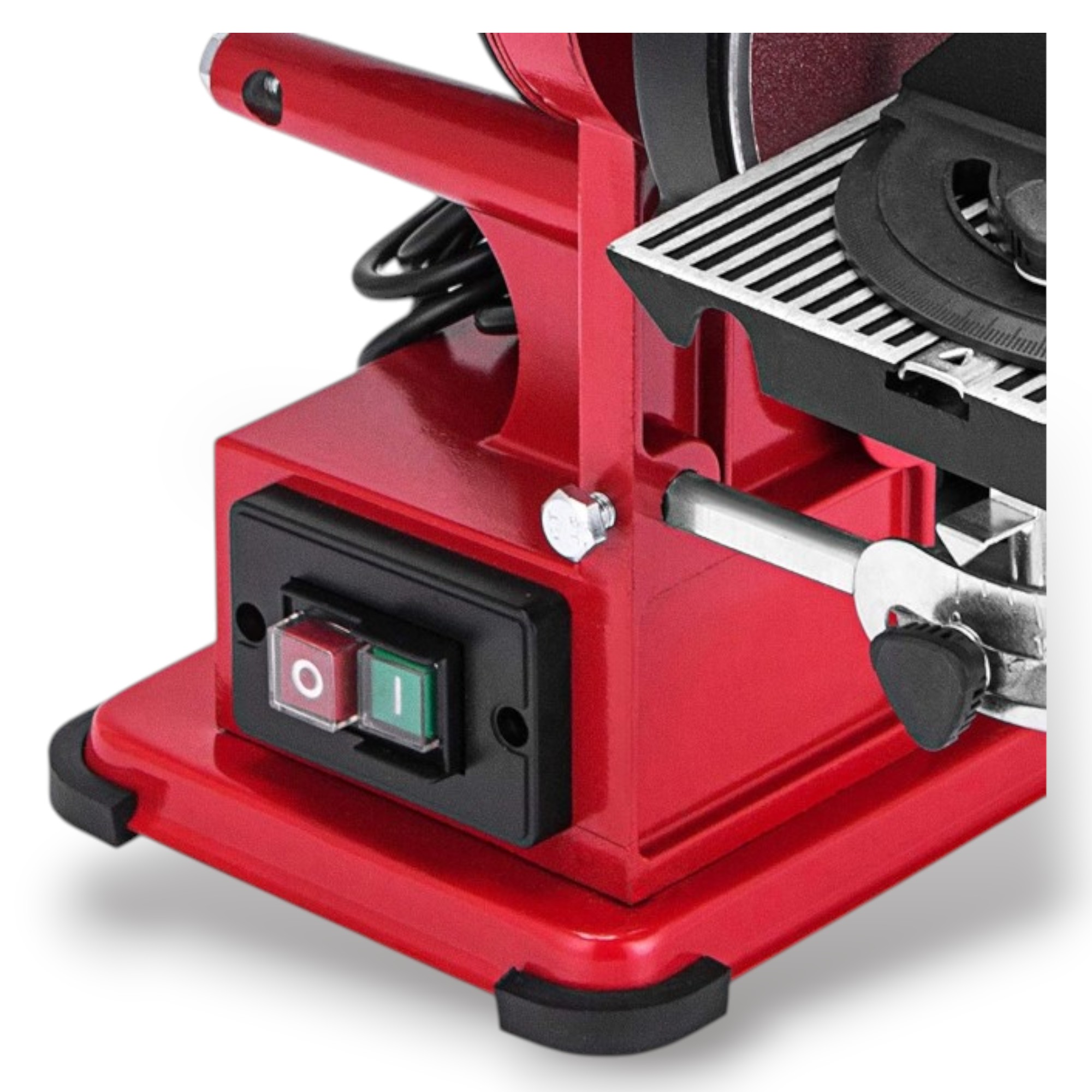 * Funkciók: Dönthető szalagegység, állítható munkadarab-támasz és beépített porelszívó csatlakozás.