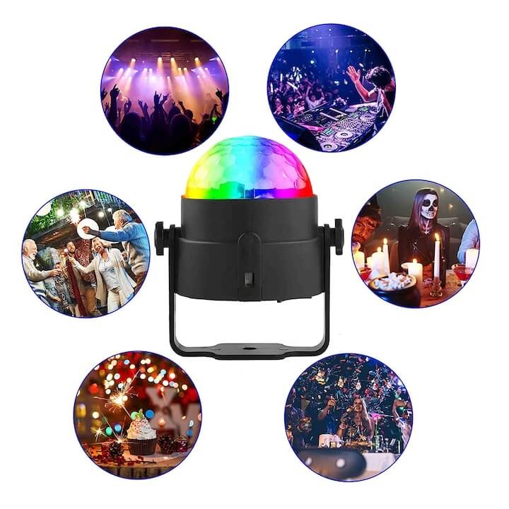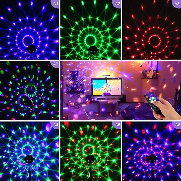 - Hangvezérlés: A fények automatikusan reagálnak a zene ritmusára, így a buli még dinamikusabbá válik.