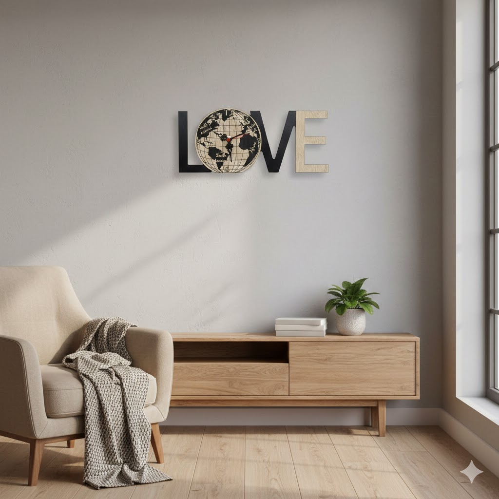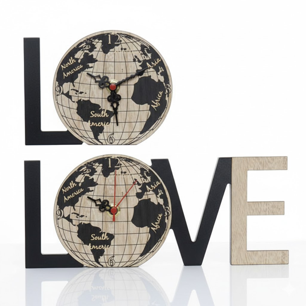 Ez a különleges asztali dekoráció a modern formavilágot ötvözi a klasszikus analóg időméréssel. A „LOVE” feliratba integrált, részletgazdag világtérkép nemcsak praktikus időmérővé, hanem inspiráló dísztárggyá is teszi az órát, amely minden pillantásnál az utazás és a szeretet fontosságára emlékeztet.