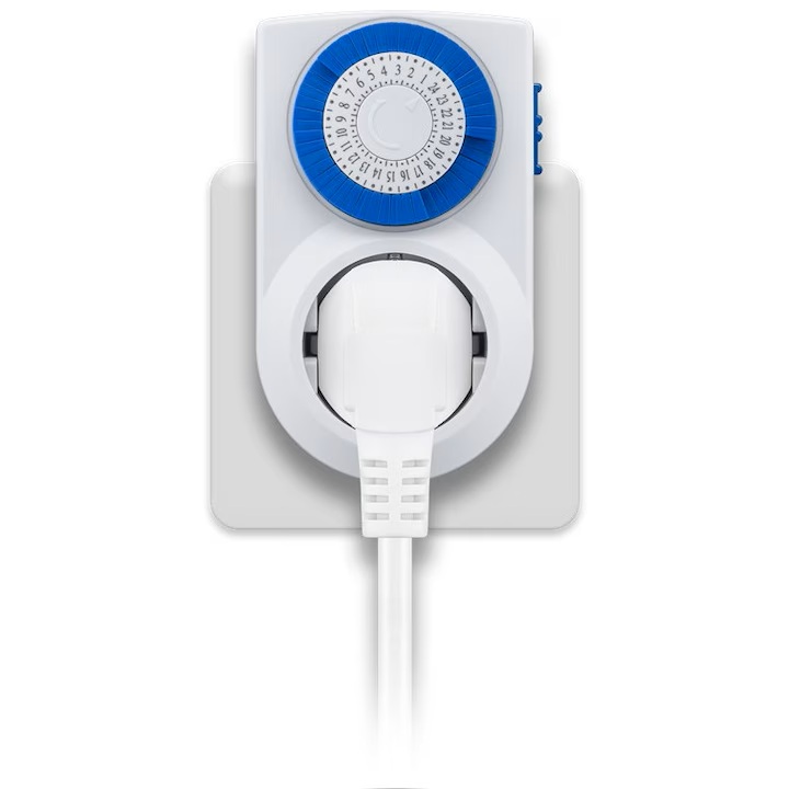 Ez a megbízható, fehér színű mechanikus időzítő lehetővé teszi az elektromos eszközök automatikus ki- és bekapcsolását a nap 24 órájában. Egyszerűen kezelhető, segít az energiatakarékosságban és az otthoni automatizálásban anélkül, hogy bonyolult beállításokra lenne szükség.