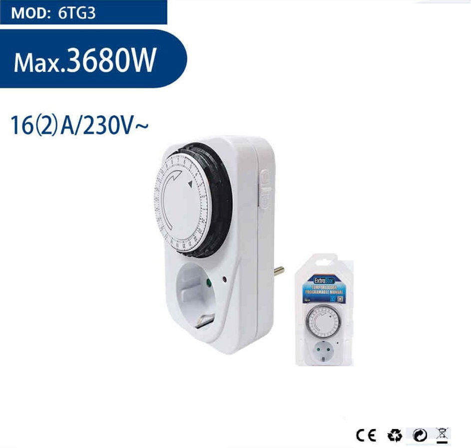 24 órás programozhatóság: A tárcsán található tüskékkel 15 perces intervallumokban állíthatja be a kívánt kapcsolási időpontokat.