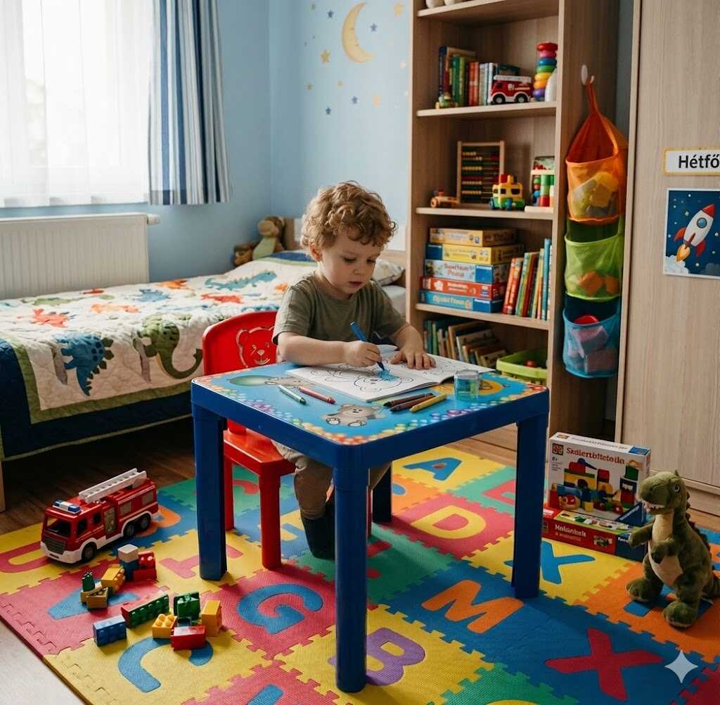 Gyermekbarát ergonómia: Ideális méretezés a kényelmes és egészséges üléshez játék közben.