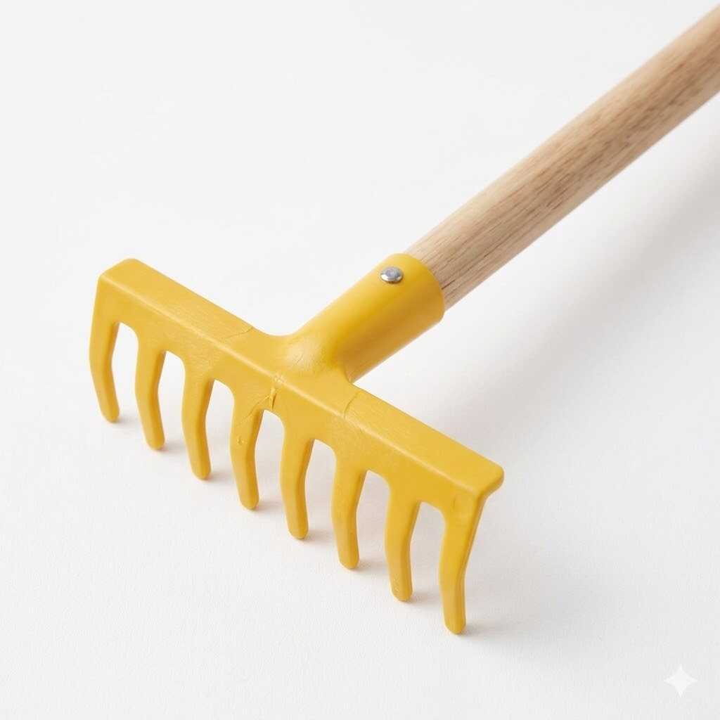 - Könnyű: A fa nyél könnyű, így a gyerekek könnyen felemelhetik és használhatják a gereblyét.