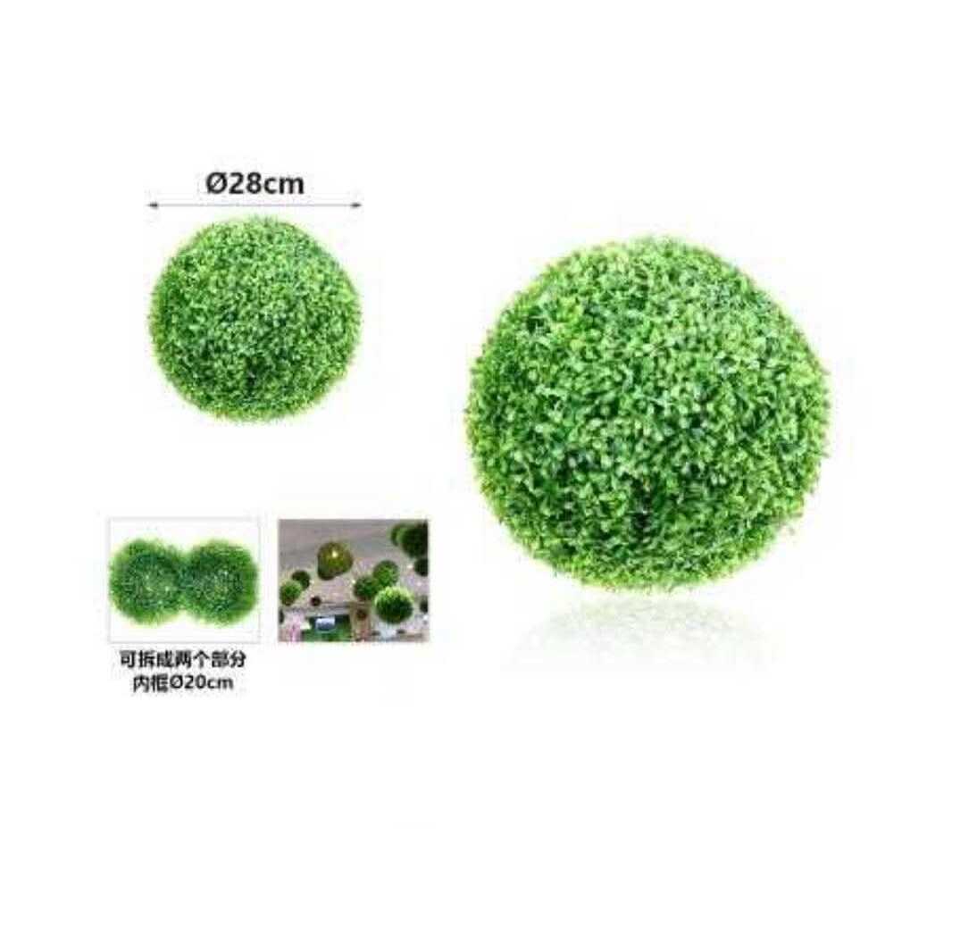 A 28 cm külső átmérőjű gömb két féltekéből áll, amelyek stabilan egymásba pattinthatóak, de akár külön-külön, félgömbként is felhasználhatóak lapos felületek díszítésére. Anyaga kiváló minőségű, UV-stabil polietilén (PE), amely hosszú távon is ellenáll a napsugárzásnak és az időjárás viszontagságainak, megőrizve élénkzöld színét. A belső rácsos szerkezet (20 cm belső átmérő) biztosítja a forma tartósságát és megkönnyíti a rögzítést vagy függesztést.