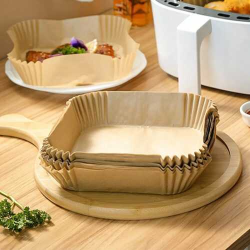 * 1 csomag (50 db) Nagy Méretű Négyzet Alakú Air Fryer Sütőpapír praktikus visszazárható tárolóban