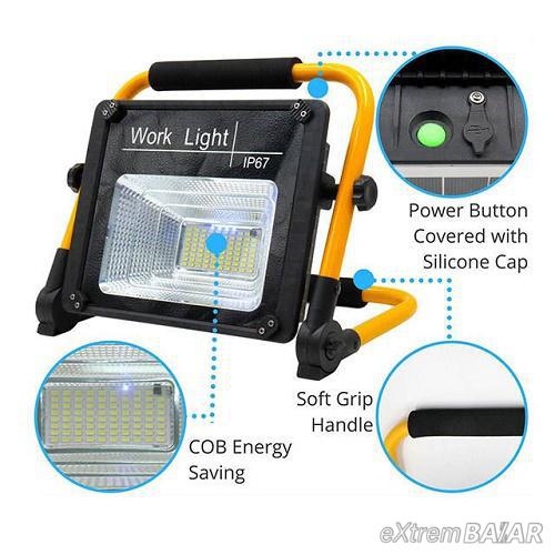 Napelemes hordozható LED reflektor 50W + távirányító + lapracsukható leírása