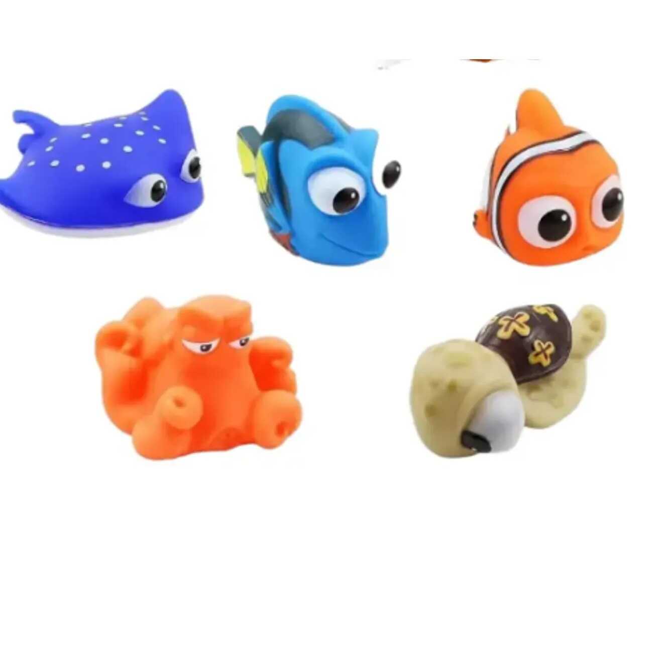 A csomagban hat darab puha, vízi állatfigura található, amelyek a népszerű animációs film világát idézik meg. A készletben helyet kapott a narancssárga-fehér csíkos bohóchal, a vidám kék doktorhal, a bölcs tengeri teknős, egy kedves sárga halacska, egy pettyes lila rája, valamint egy narancssárga polip is. Minden figura nagy, kifejező szemekkel és barátságos arckifejezéssel készült, hogy biztonságérzetet és örömöt nyújtson a gyerekeknek.