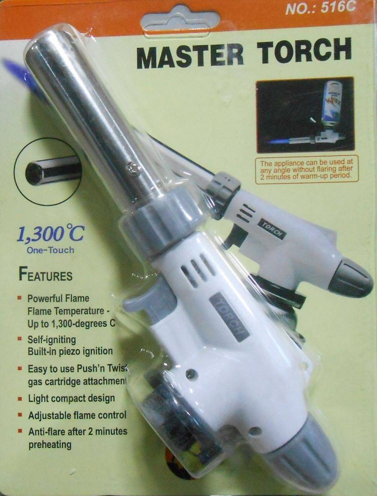 A gázlángszóró beépített piezo gyújtású, teljesítménye az eszközön lévő csap segítségével állítható, 18 cm hosszú, a láng hőmérséklete 1300°C-ot is elérheti. Műhelyben, grillezésnél és tűzgyújtásnál is tökéletesen használható.