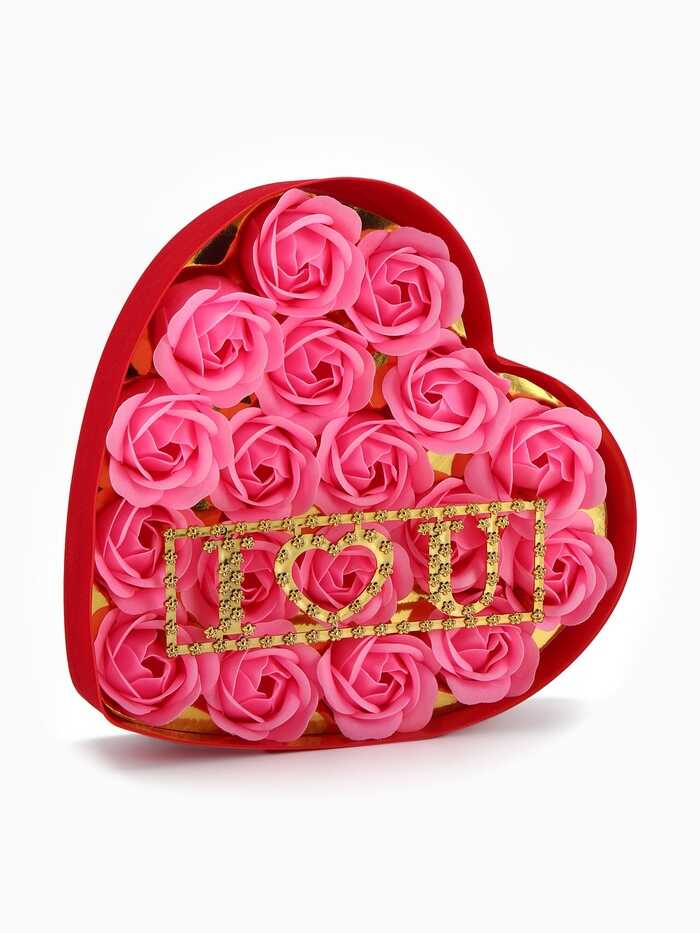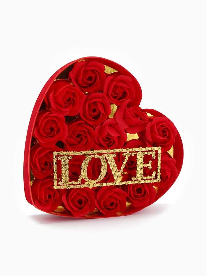 Örök szappanrózsa box „LOVE” felirattal – Szív alakú díszdobozban