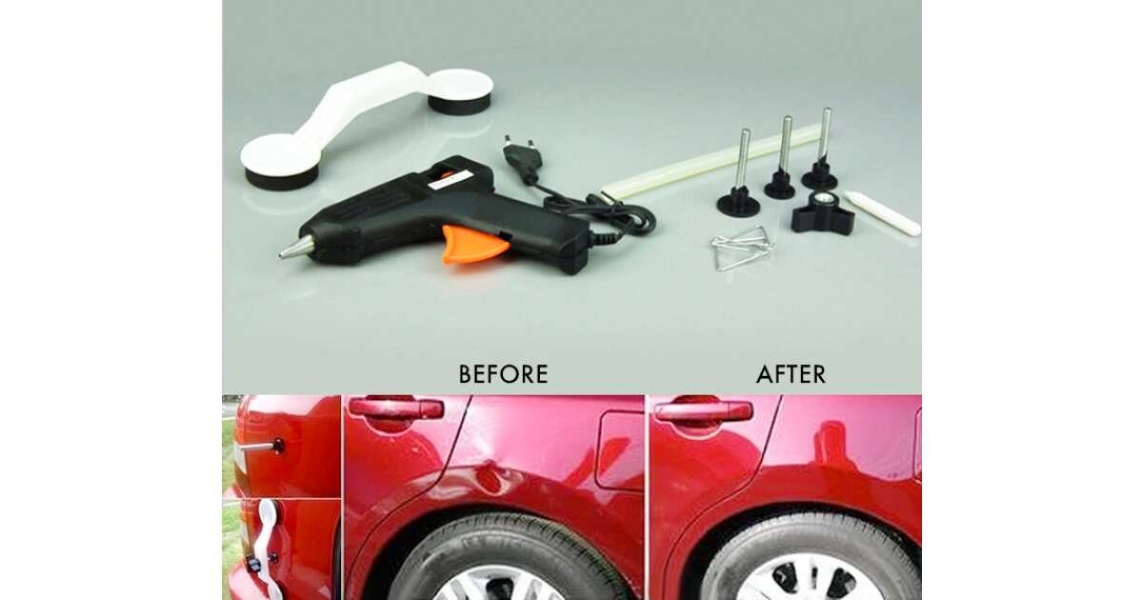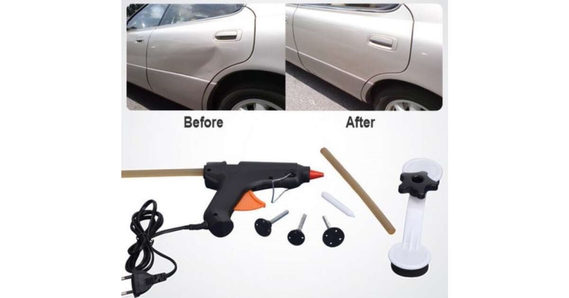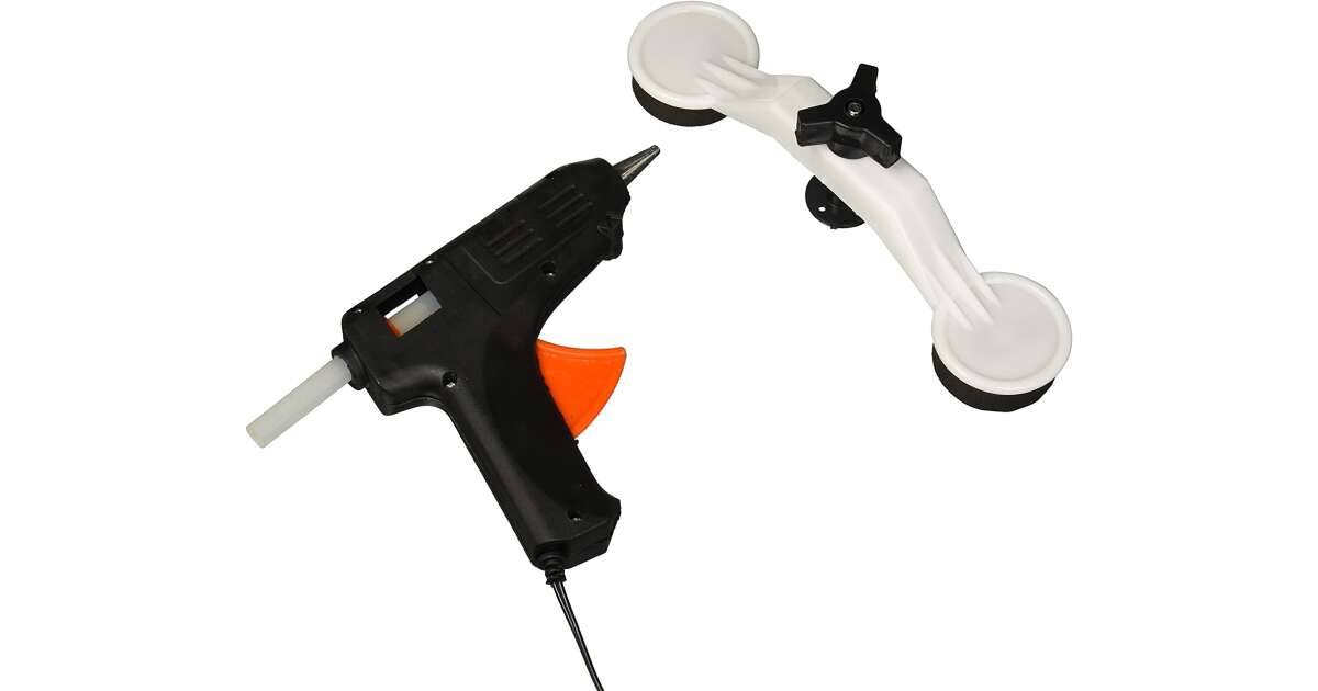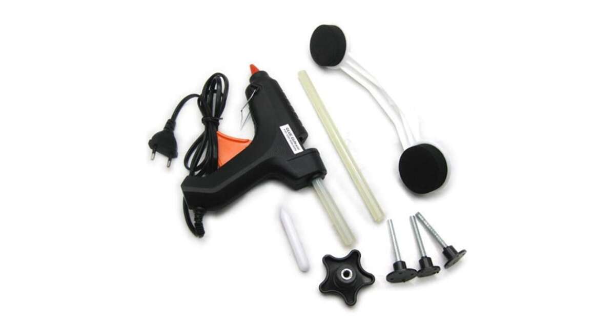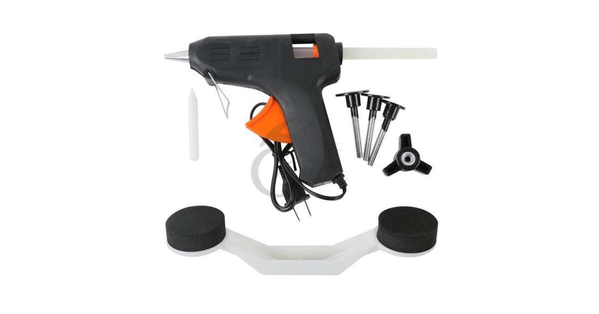 - Ragasztópisztoly: Ez az eszköz lehetővé teszi a speciális ragasztórúd felvitelét a horpadáshoz.