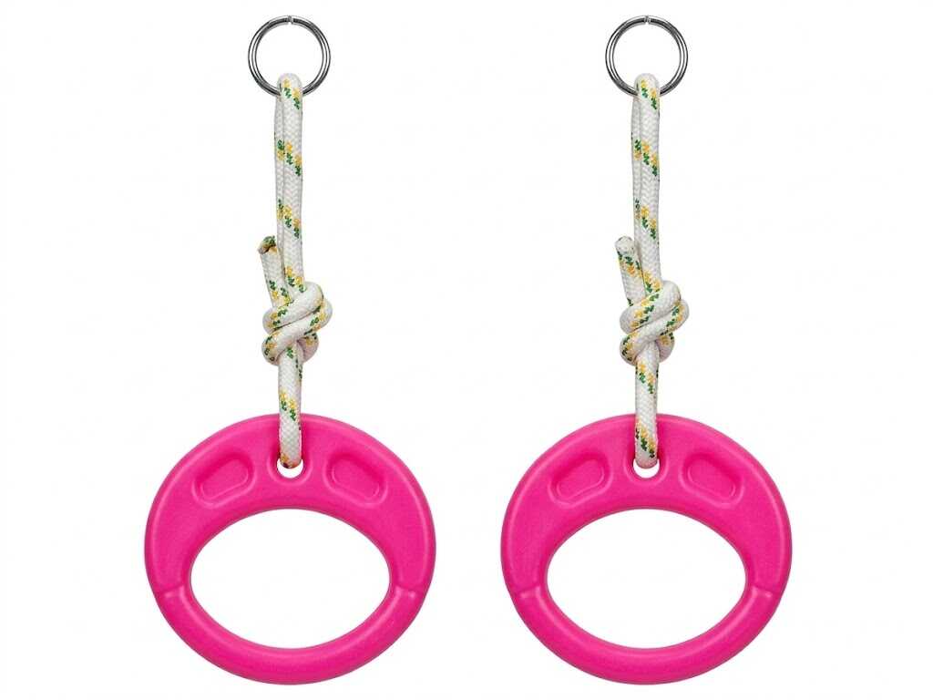 A gyűrűk ergonomikus kialakítása kifejezetten a gyermekkézre lett méretezve, így biztos és kényelmes fogást nyújtanak. A strapabíró, időjárásálló műanyag felülete nemcsak tartós, hanem egyszerűen tisztán tartható is – egy gyors törlés, és máris folytatódhat a torna! Az élénk rózsaszín szín nemcsak látványos, de UV-álló is, így hosszú ideig megőrzi ragyogását a napsütésben is.