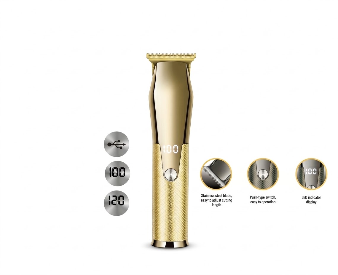 Ez a készülék a precíziós mérnöki munka és a modern design mesterműve. A gép lelke a titán bevonatú álló penge, amely kiemelkedő élességet és irritációmentes vágást biztosít. Az integrált LED kijelző elegánsan belesimul az arany készülékházba, folyamatosan tájékoztatva Önt az akkumulátor százalékos töltöttségéről, így sosem éri meglepetés. A Mute design technológiának köszönhetően a készülék zajszintje jóval alacsonyabb kategóriatársainál, így a reggeli készülődés nyugodt és diszkrét marad. Az ergonomikus, áramvonalas kialakítás (Streamlined modeling) és a bordázott, csúszásmentes felület maximális kontrollt ad a legbonyolultabb mozdulatoknál is.