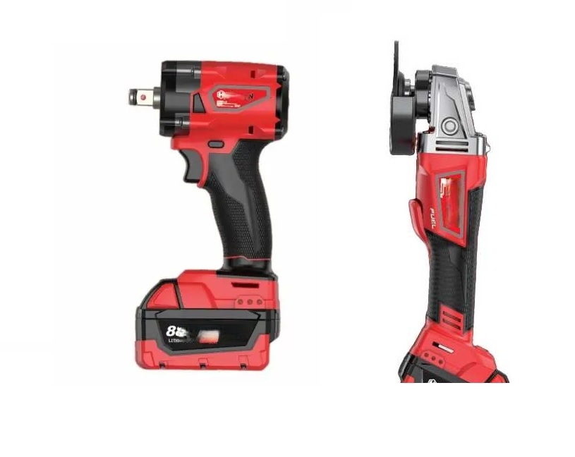 * Akkumulátoros Sarokcsiszoló: Fémek és betonlapok gyors vágására, csiszolására és felületi tisztítására alkalmas. 8500 RPM maximális fordulatszámmal, 125 mm-es tárcsaátmérővel és biztonsági fékrendszerrel van ellátva.