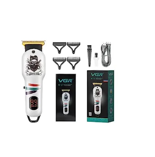 VGR V-971 professzionális újratölthető digitális kijelzős akkus szakállszőrvágó készlet vezetőfésűkkel, kefével USB-kábel férfiaknak, családoknak vagy házi kedvenceknek.