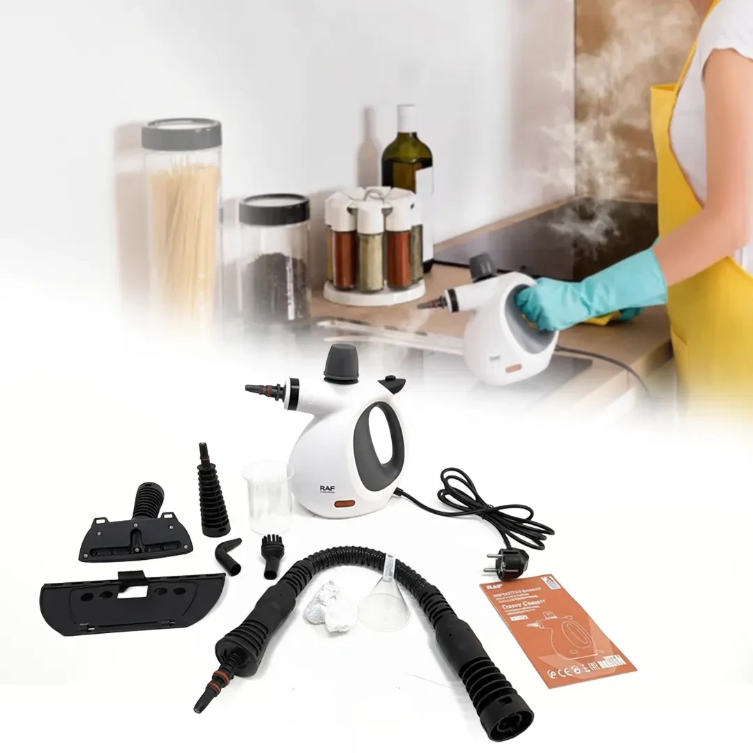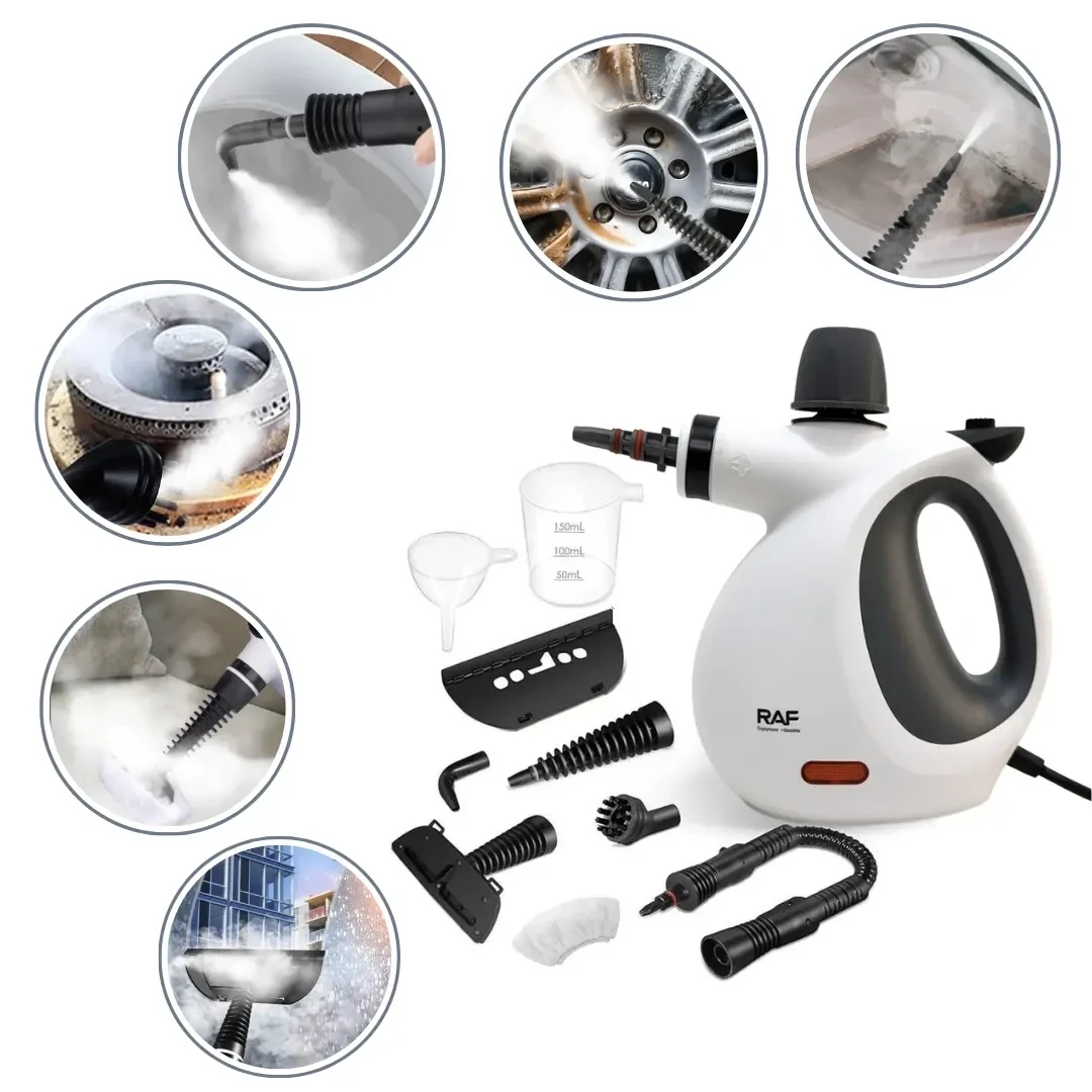 Szabaduljon meg a makacs szennyeződésektől és a baktériumoktól vegyszerek nélkül ezzel a sokoldalú RAF gőztisztítóval, amely a magas hőmérsékletű gőz erejével varázsolja sterillé otthonát. A készülék kompakt, ergonomikus kialakítása könnyű kezelhetőséget biztosít, miközben a modern fehér-szürke dizájn bármely háztartásba illik.