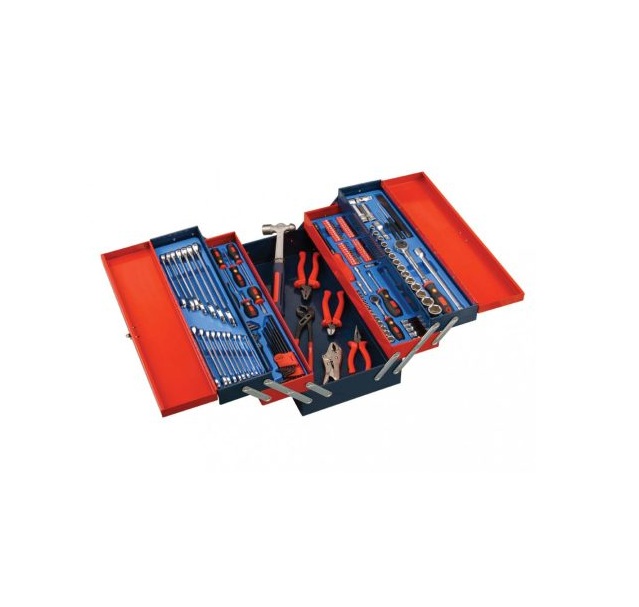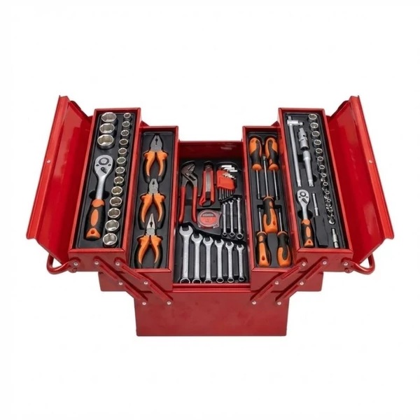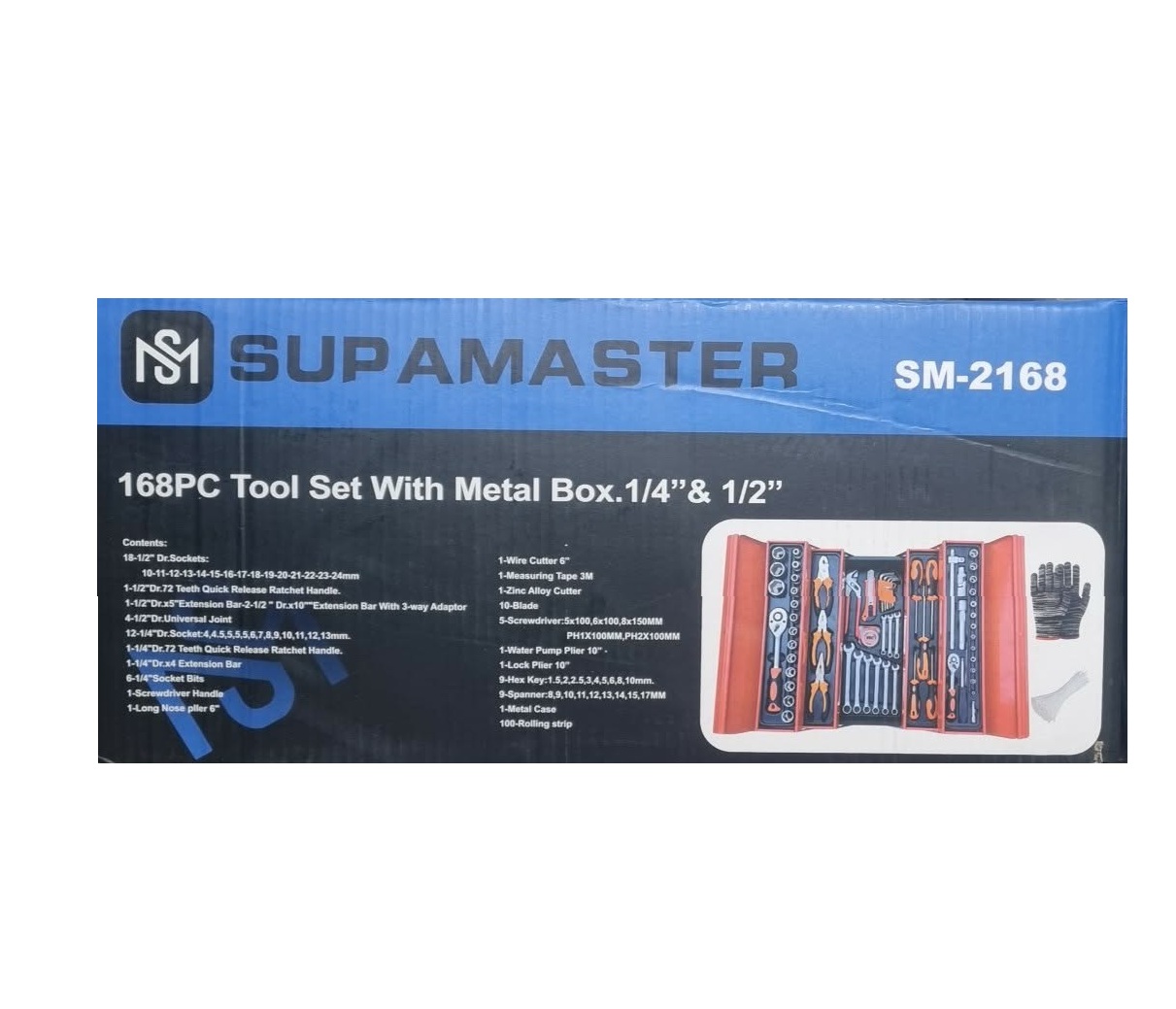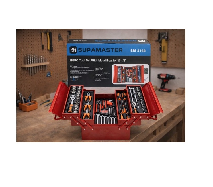 Sok szakembernek elegendő a törékeny műanyag dobozokból, amelyek hamar tönkremennek. A SUPAMASTER SM-2168 (Tool Set With Metal Box) visszahozza a klasszikus, piros fém harmonika ládát, amely lépcsőzetesen nyílik, így Ön szerelés közben egyetlen pillantással megtalálja a keresett kulcsot vagy fogót.