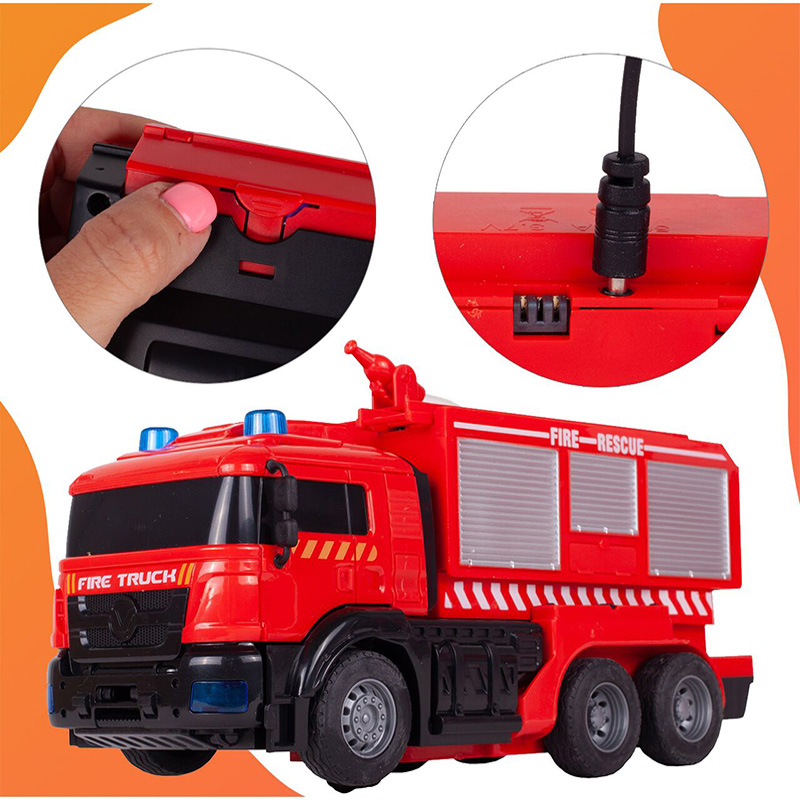 - Töltés és Energiaellátás: A tűzoltóautó könnyen tölthető a mellékelt USB kábellel, így nincs szükség folyamatosan elemcserére. A távirányító pedig 2 db AA elemmel működik (nem tartozék).