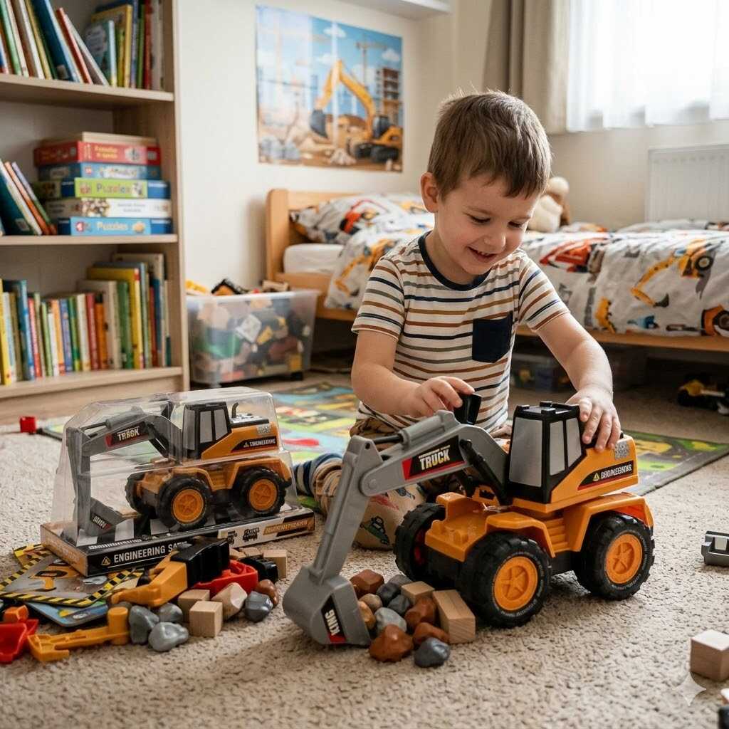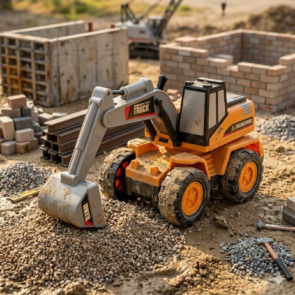 A jármű kiváló minőségű, ütésálló műanyagból készült, így bírja az intenzív igénybevételt és a „nehéz terhek” mozgatását is. A részletgazdag fülke és a karosszéria élethű matricázása tovább fokozza a játékélményt, valódi munkagép érzetét keltve.