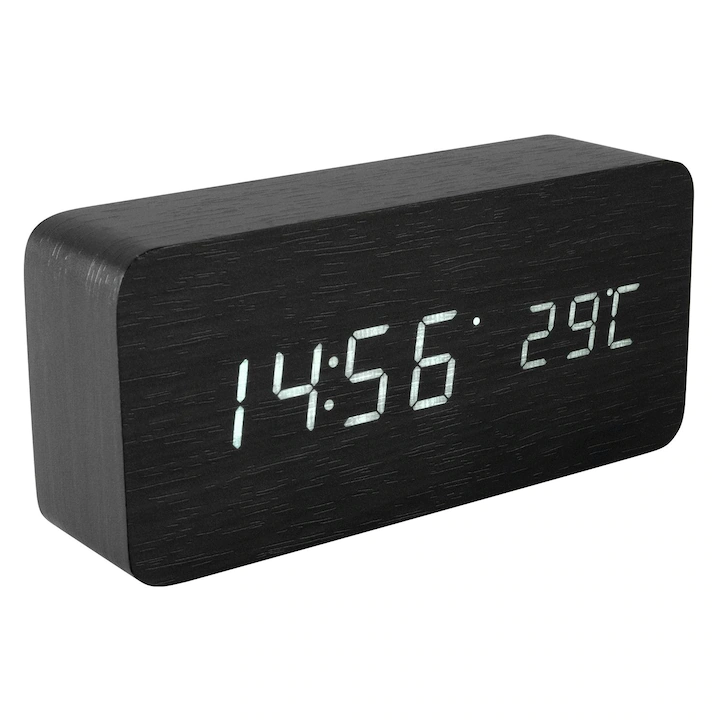 A Silva ébresztőóra a kortárs minimál design jegyében született. Nem csupán egy időmérő eszköz, hanem egy kifinomult lakberendezési tárgy, amely észrevétlenül simul bele a modern enteriőrbe. A sötét, erezett felület mögül felsejlő LED világítás futurisztikus, mégis meleg hatást kelt.