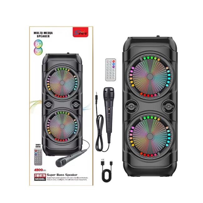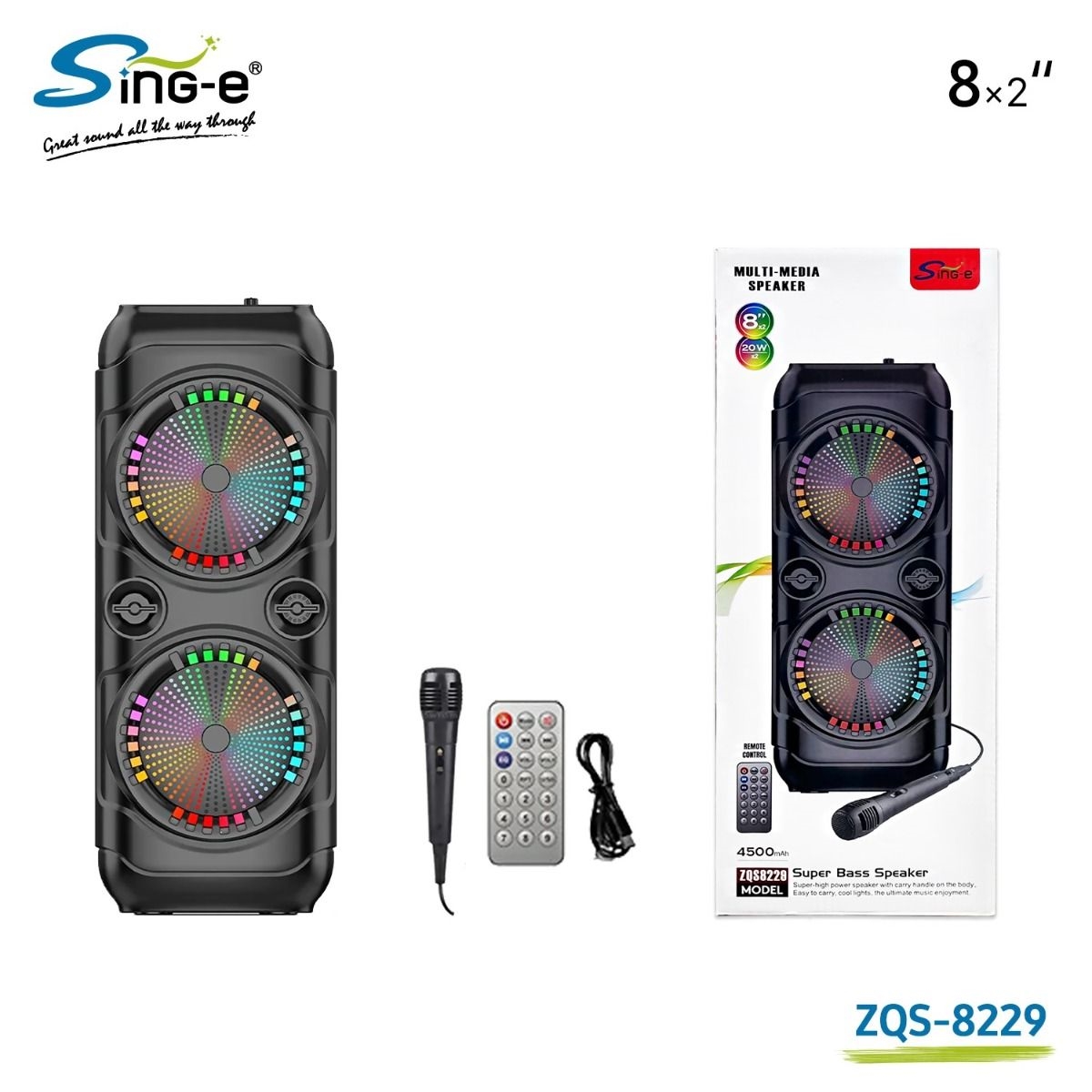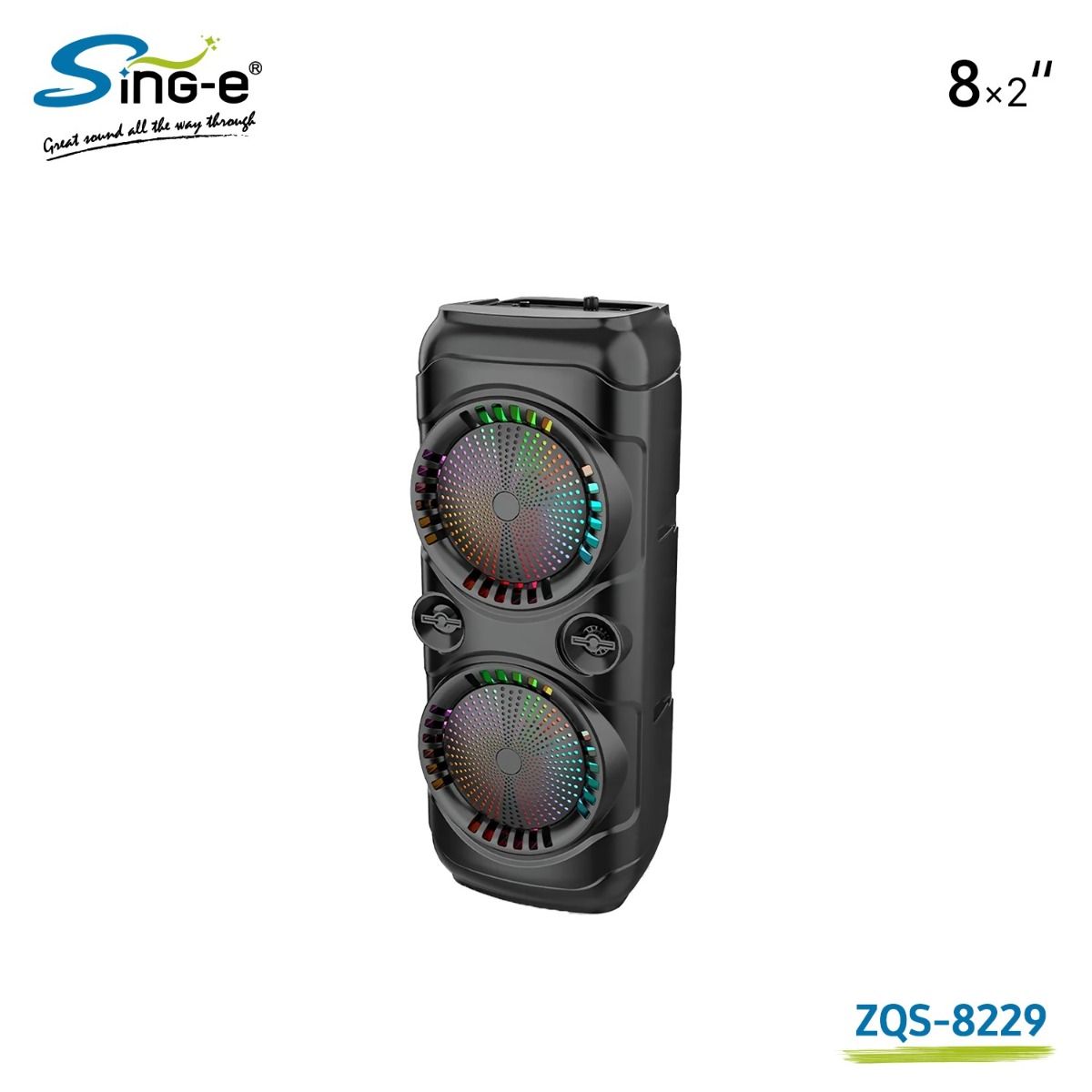 A Sing-e ZQS8229 Bluetooth hangszóróval a buli garantáltan felejthetetlen lesz! A két nagy teljesítményű 8″-os hangszóró páratlan sztereó hangzást biztosít, amely azonnal magával ragad, míg a színes LED-fényshow soha nem látott audio-vizuális élményt nyújt, felemelve a hangulatot.