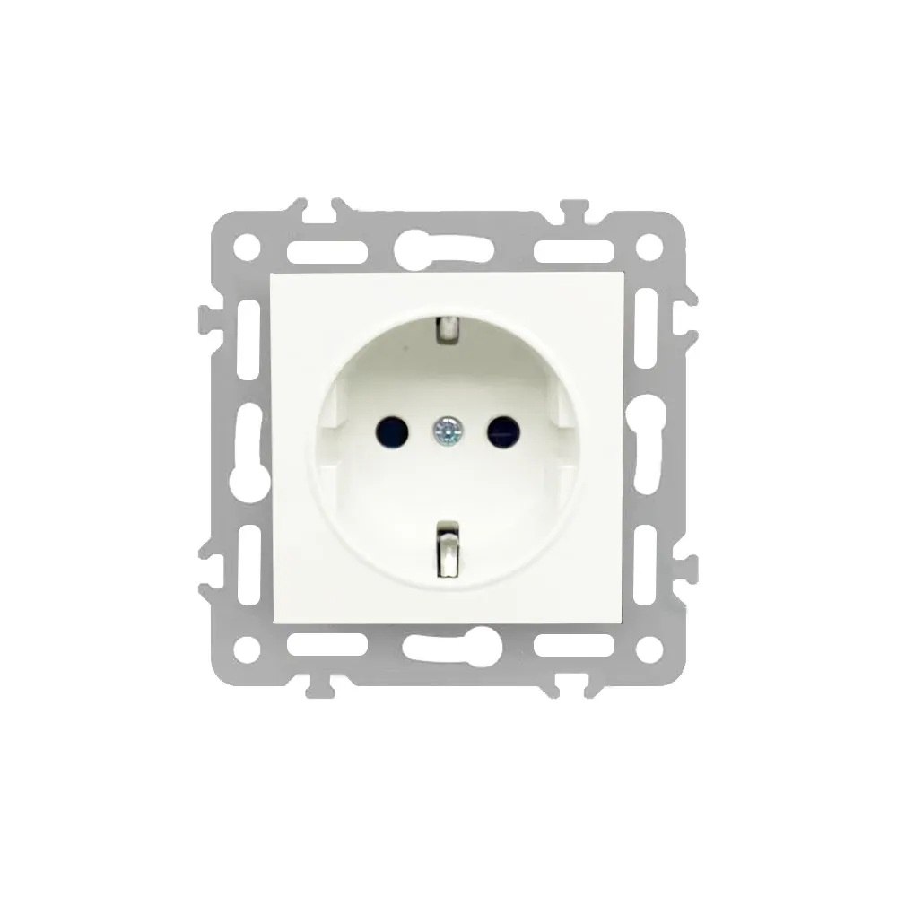 Ez a kiváló minőségű, süllyesztett kivitelű Schuko fali csatlakozóaljzat megbízható és esztétikus megoldást nyújt otthoni vagy irodai elektromos hálózatok kiépítéséhez. Letisztult, fehér színe és modern formatervezése révén bármely beltéri környezetbe diszkréten illeszkedik, biztosítva a stabil elektromos csatlakozást.