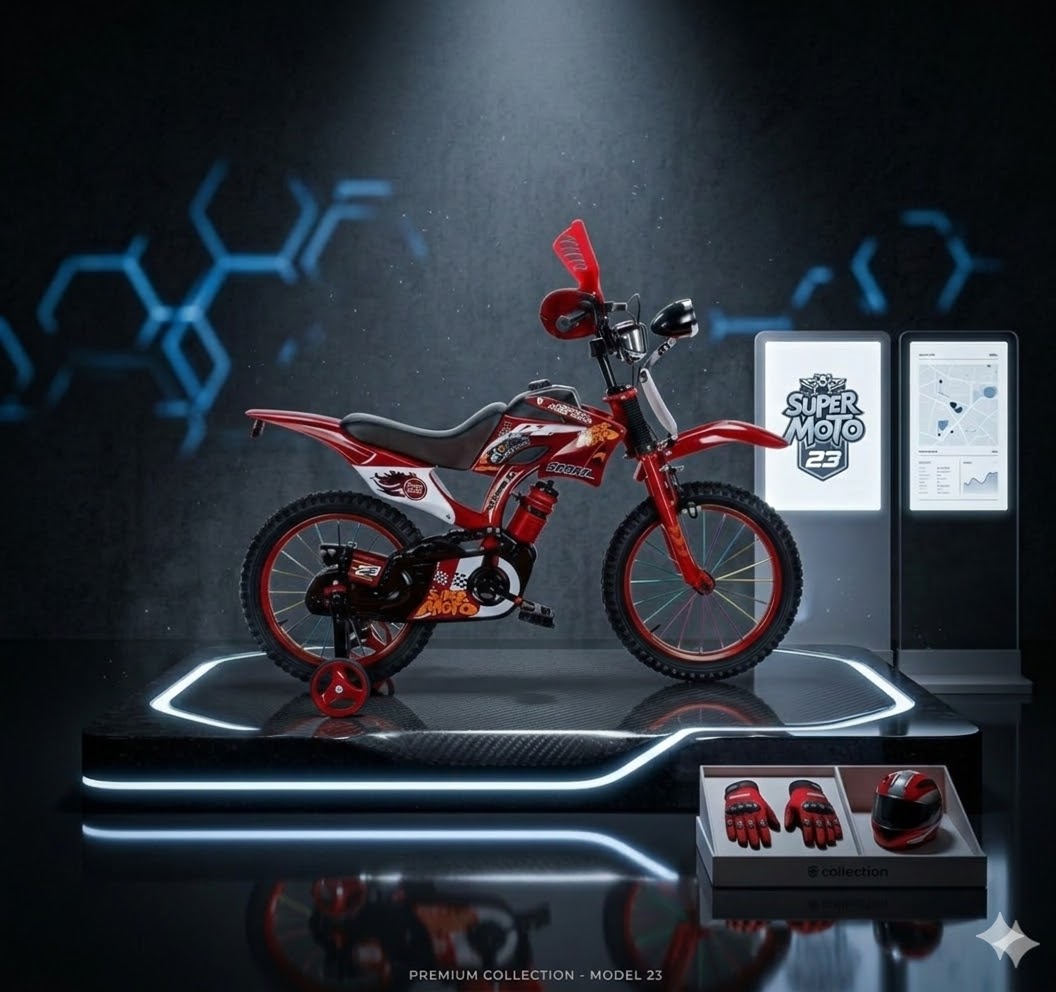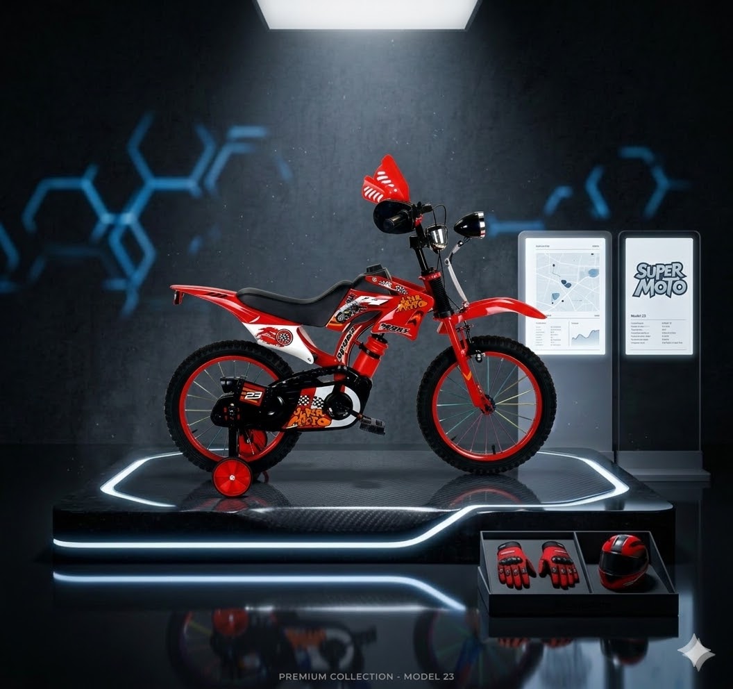 Super Moto 16″ Gyerek Kerékpár – Motocross dizájn, Segédkerekekkel