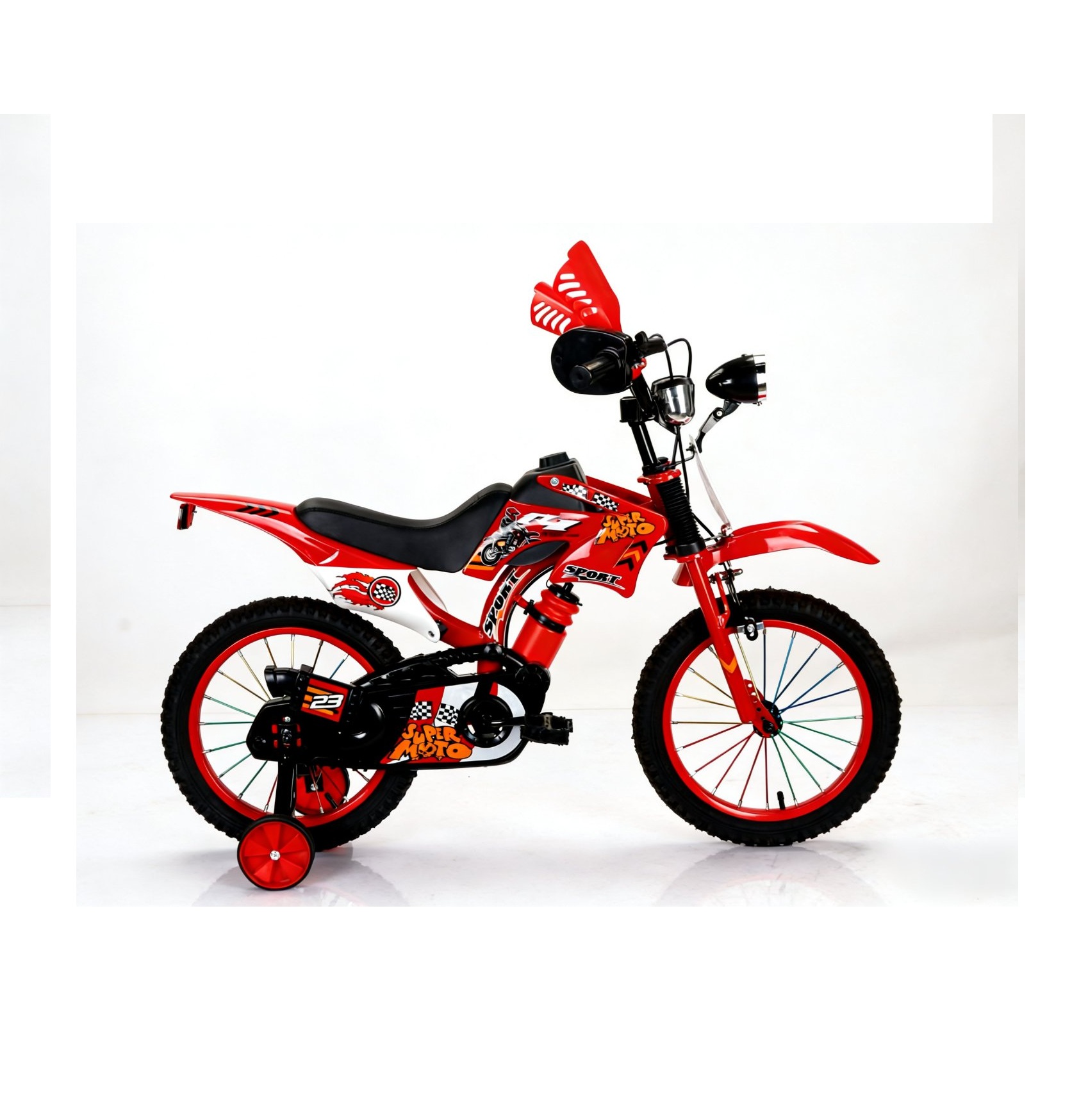 Super Moto 16″ Gyerek Kerékpár – Motocross dizájn, Segédkerekekkel piros színben