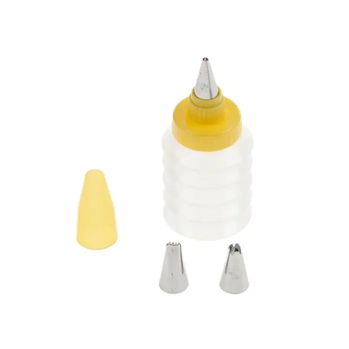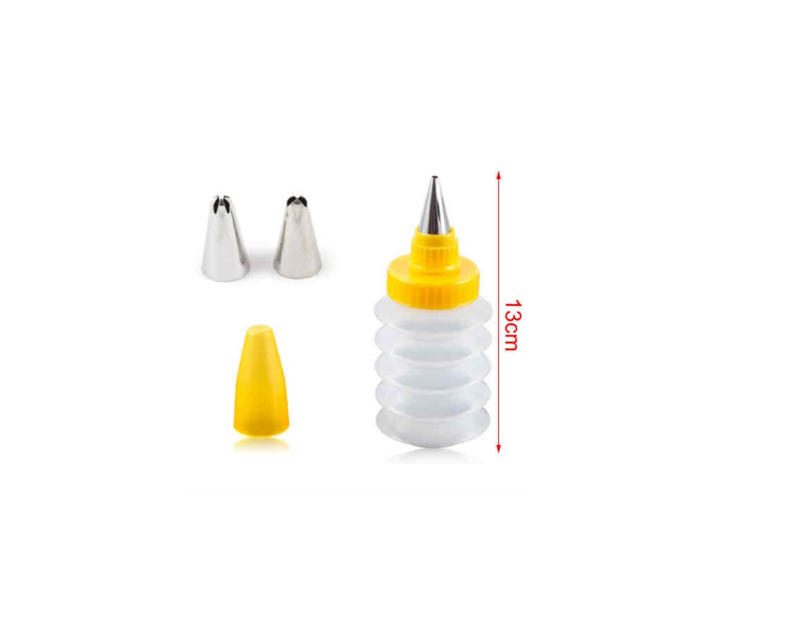 Tegye precízzé és egyszerűvé a sütemények díszítését ezzel a praktikus, harmonika rendszerű szilikon habnyomó készlettel. A 13 cm-es magasságú, rugalmas szilikon tartály lehetővé teszi a krémek és cukormázak folyamatos, egyenletes adagolását, miközben ergonomikus formája kényelmes fogást biztosít hosszabb dekorálási munka során is. A készlet három különböző mintázatú rozsdamentes acél díszítőfejet tartalmaz, amelyekkel változatos mintákat és feliratokat készíthet.