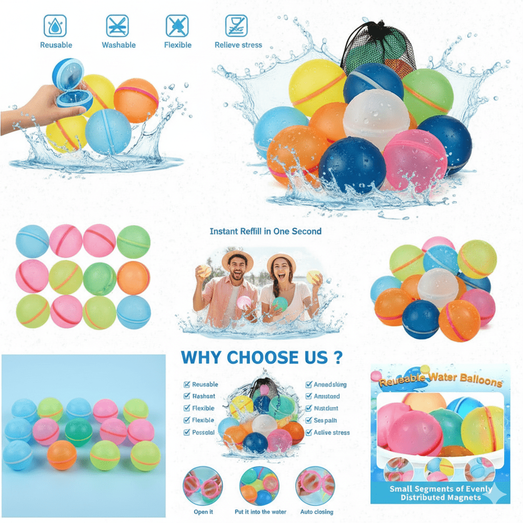 • Végtelen újrafelhasználhatóság: Nincs többé lufi pazarolás! A prémium minőségű, tartós szilikon anyagnak köszönhetően a bombákat újra és újra megtölthetitek és használhatjátok. Egyszerűen csak merítsd vízbe, és a mágneseknek hála pillanatok alatt lezárul.