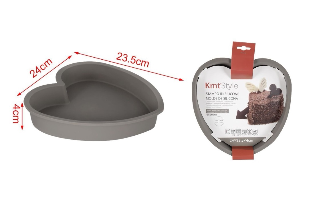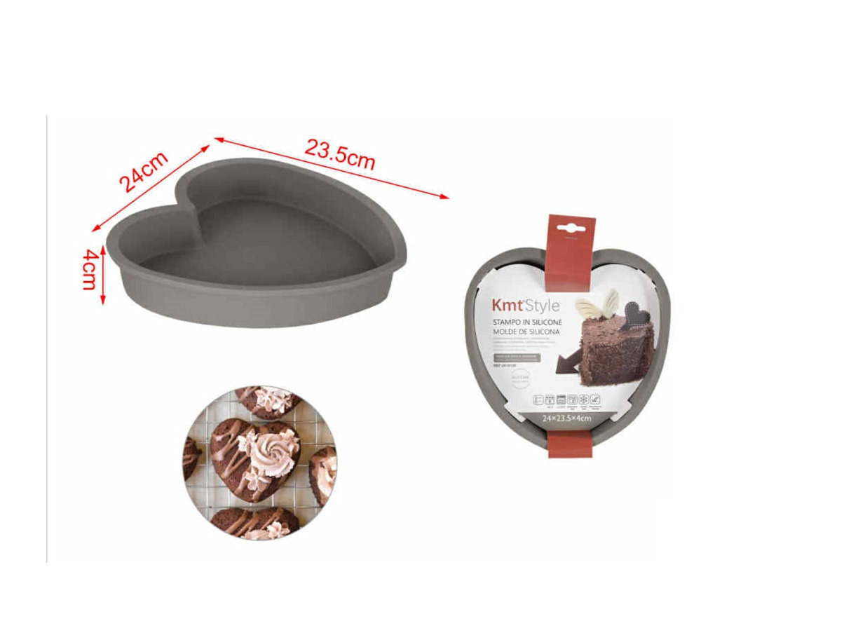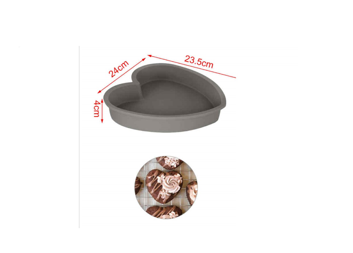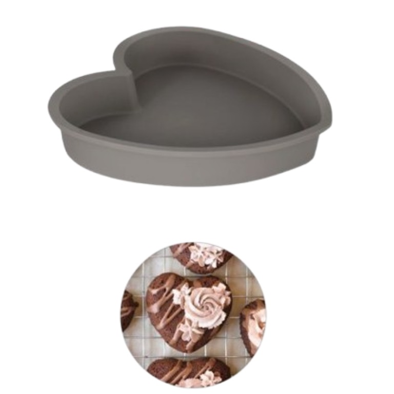 Készítsen látványos és romantikus édességeket ebben a prémium minőségű, szív alakú szilikon sütőformában. A 24 x 23,5 cm-es méret ideális torták, piskóták vagy brownie-k elkészítéséhez, a 4 cm-es peremmagasság pedig stabil tartást biztosít a tésztáknak sütés közben. A sötétszürke, modern kivitel nemcsak esztétikus, hanem kiváló hőelosztást is garantál, így a sütemények egyenletesen sülnek át.